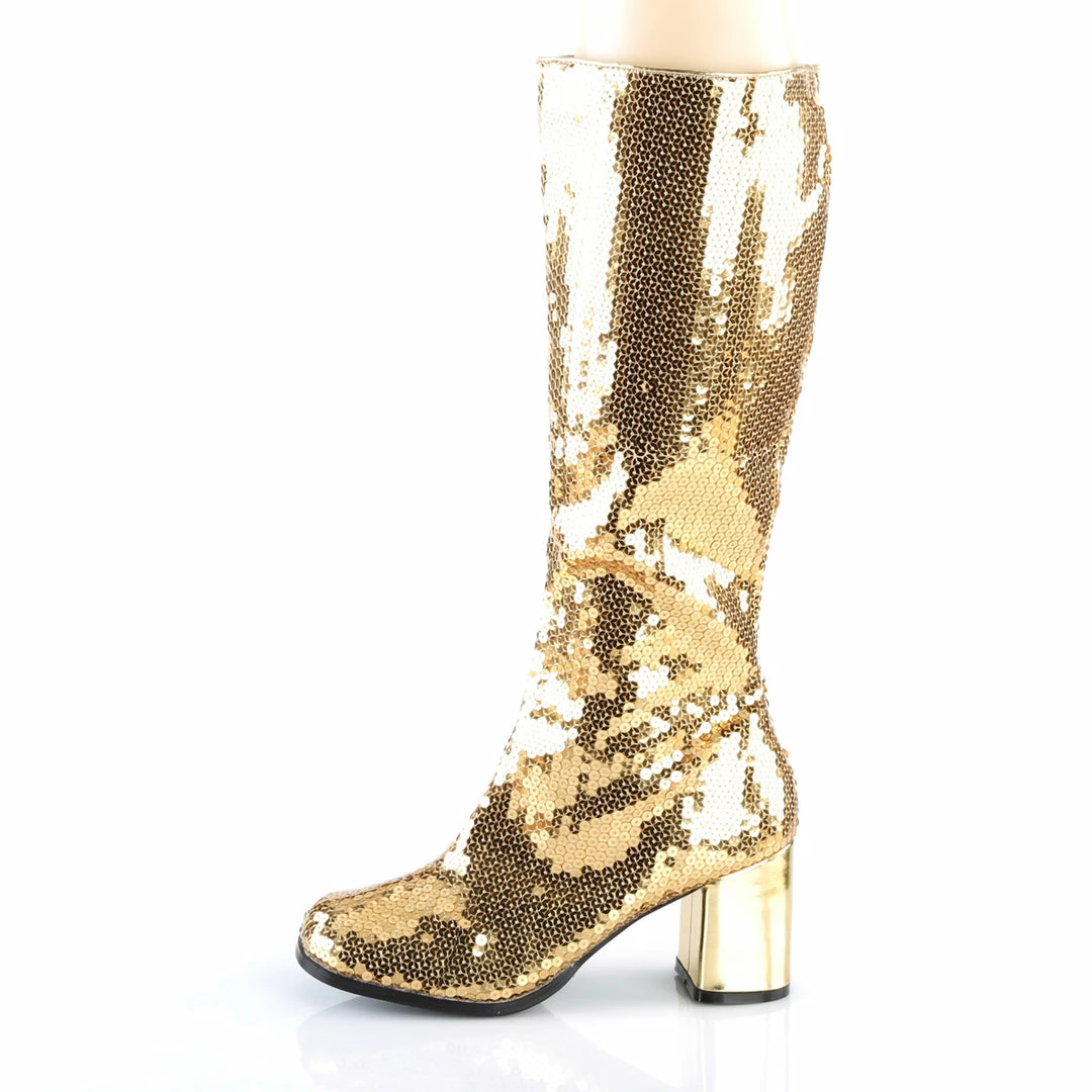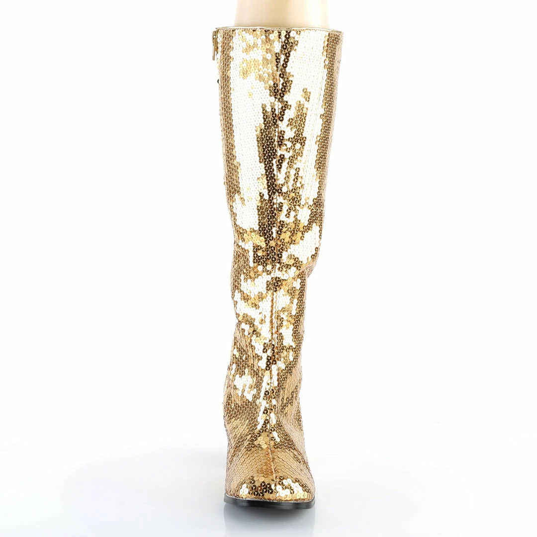 3″” (7.6cm) Block Heel, Sequin Knee Boot full inner side zipper