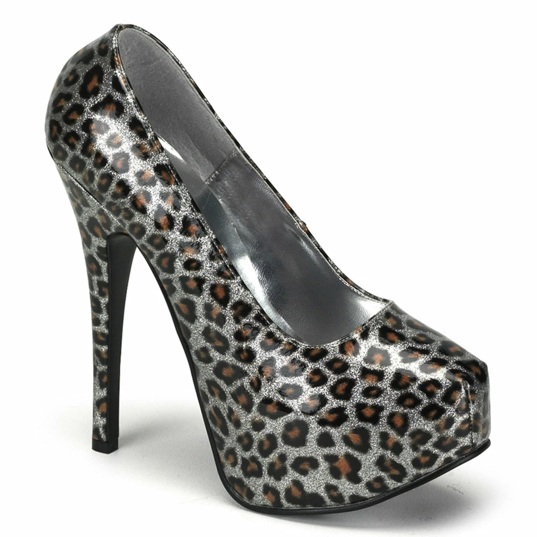 5 3/4″” (14.6cm) Heel, 1 3/4″” (4.5cm) Concealed Platform, Cheetah Glitter Patent Pump