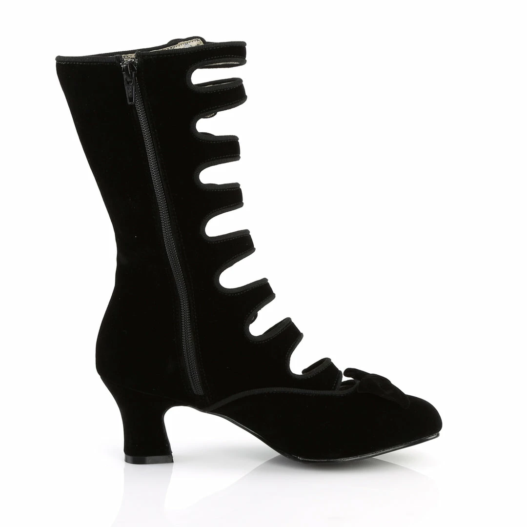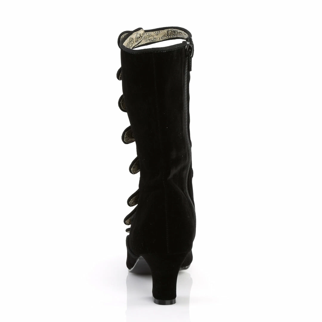 2 1/2″” (6.4cm) Heel, 8 Straps with Elastic Button Details Velvet Calf Boot Full Inner Side Zipper