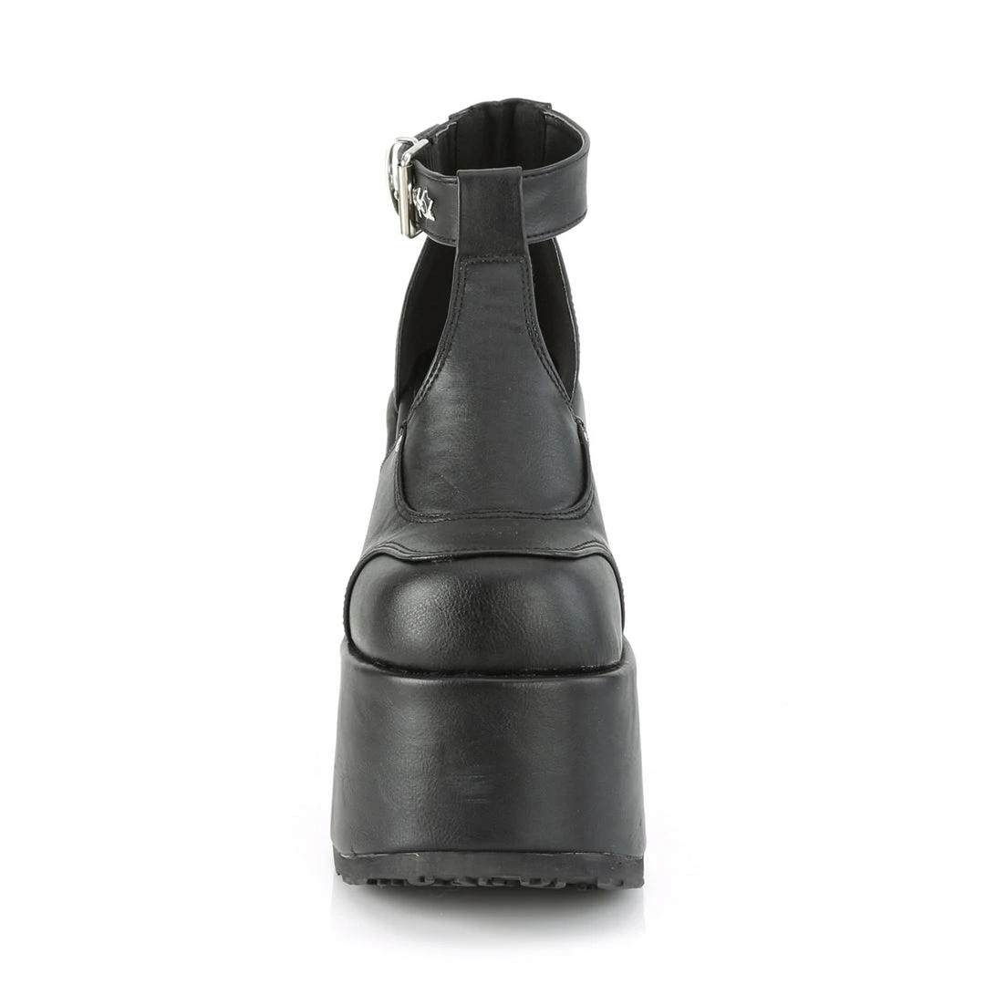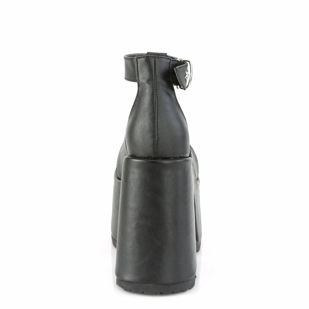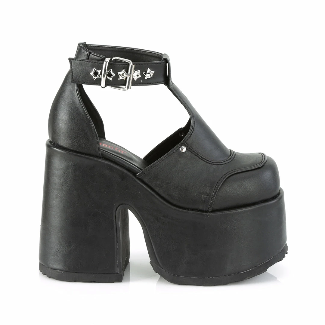 5″” (127mm) Chunky Heel, 3″” (76mm) Platform T-Strap Sandal Featuring Silver-Tone Star Shaped Eyelets at Straps
