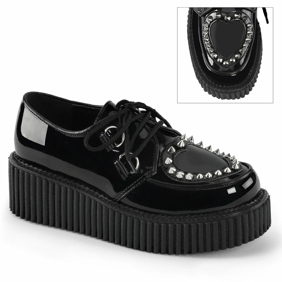 2″” (5.1cm) Platform Creeper Featuring See-Through Heart Cutout Design, D-Ring Lace, Pointed Studs and Piping Detail