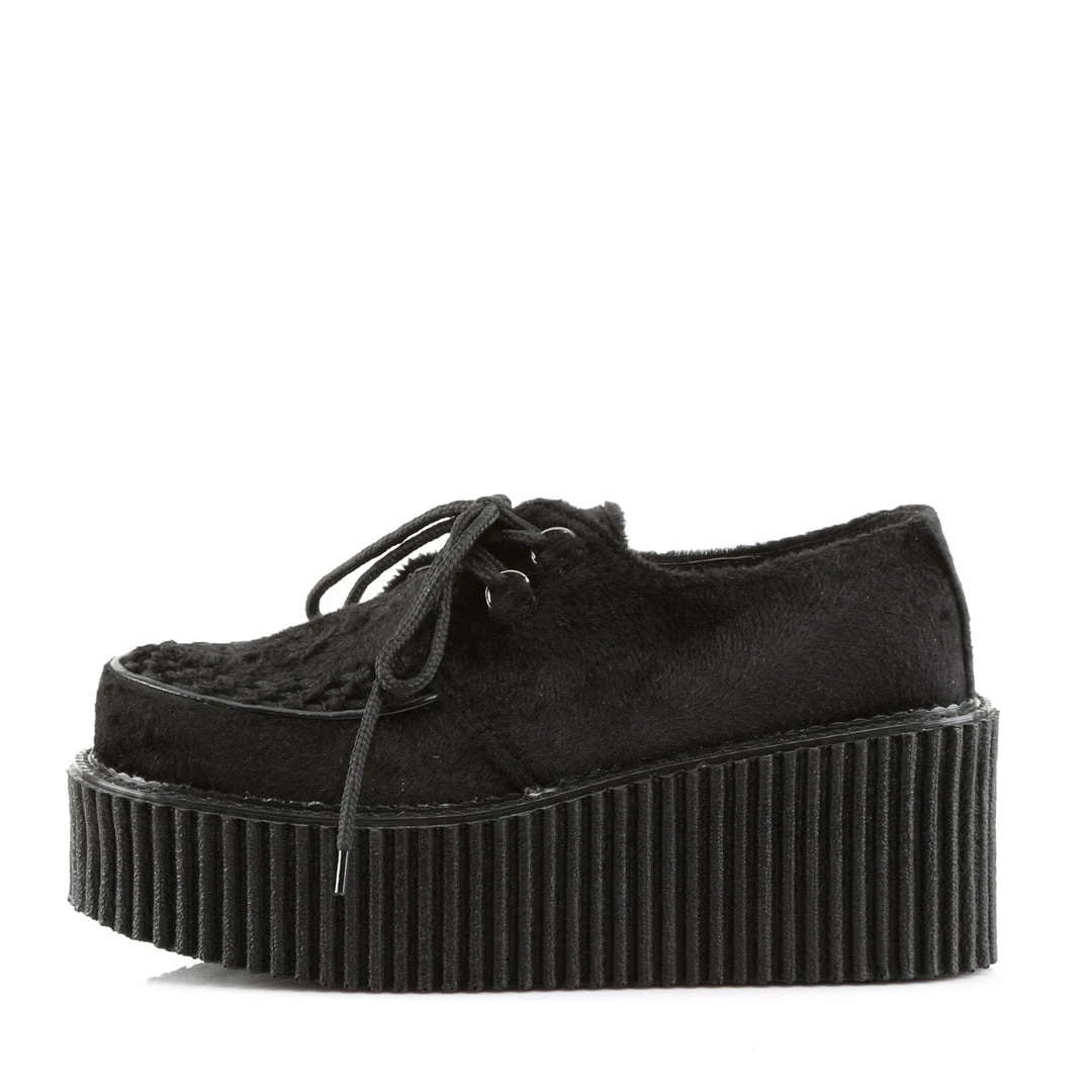 3″” (7.6cm) Platform Goth Punk Rockabilly Fur Creeper Shoes with Black Fur