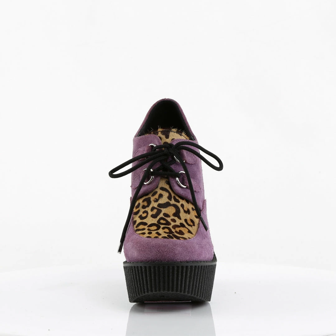 Demonia CREEPER-304 – Purple Vegan Suede-Leopard Printed Pony Hair