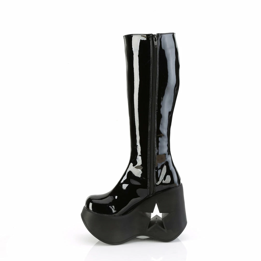 5″ Star Cutout PF Wedge Knee High Boot, Inside Zip