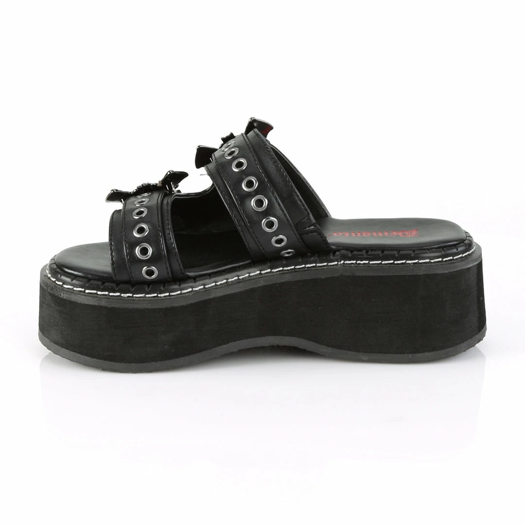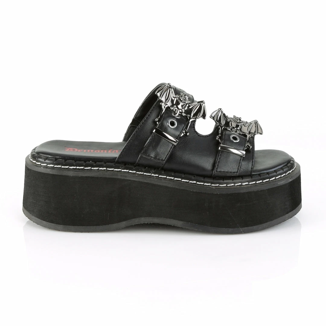 2″” Platform Double Strap Slide Sandal Featuring Riveted Straps and Ornamental Bat Buckles