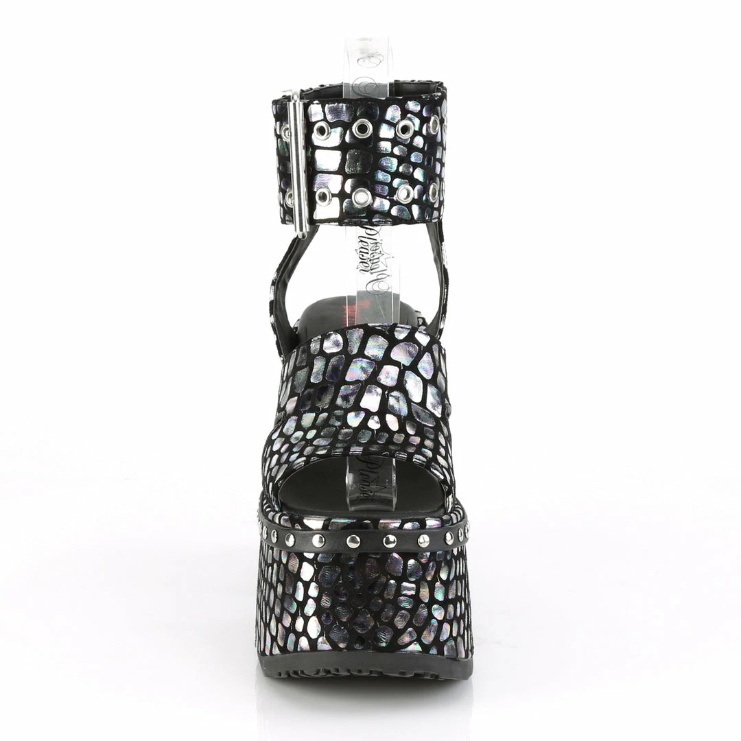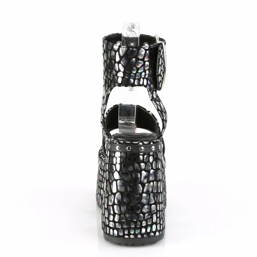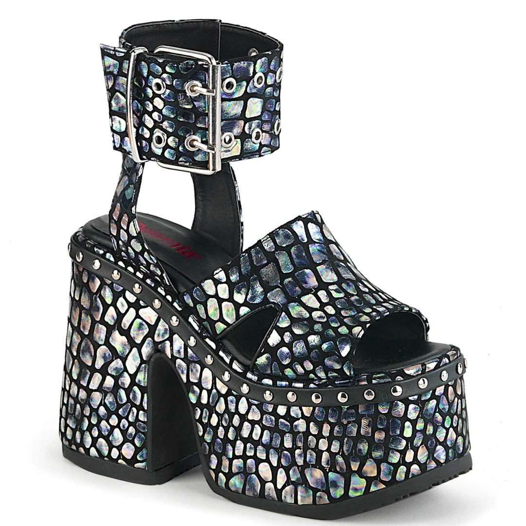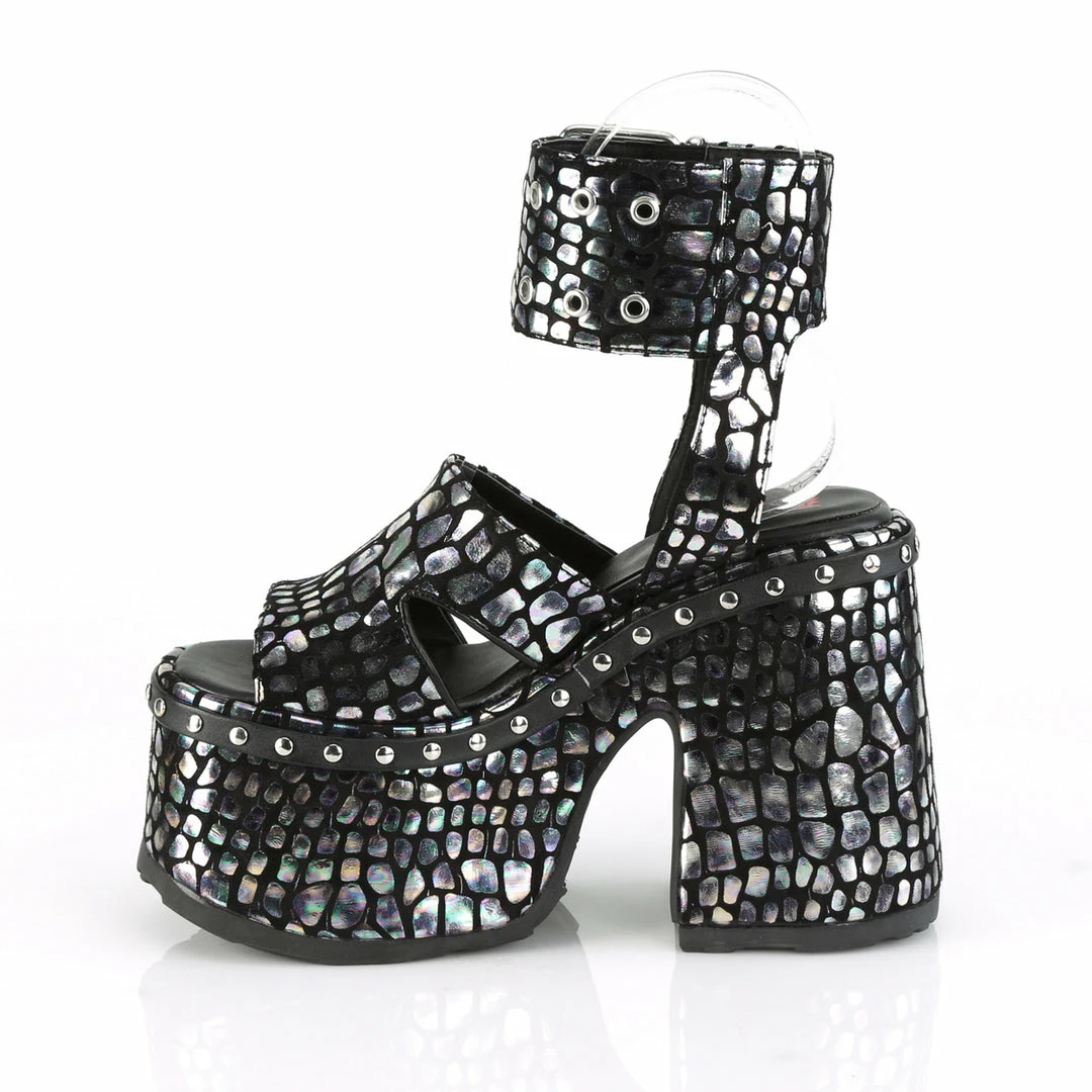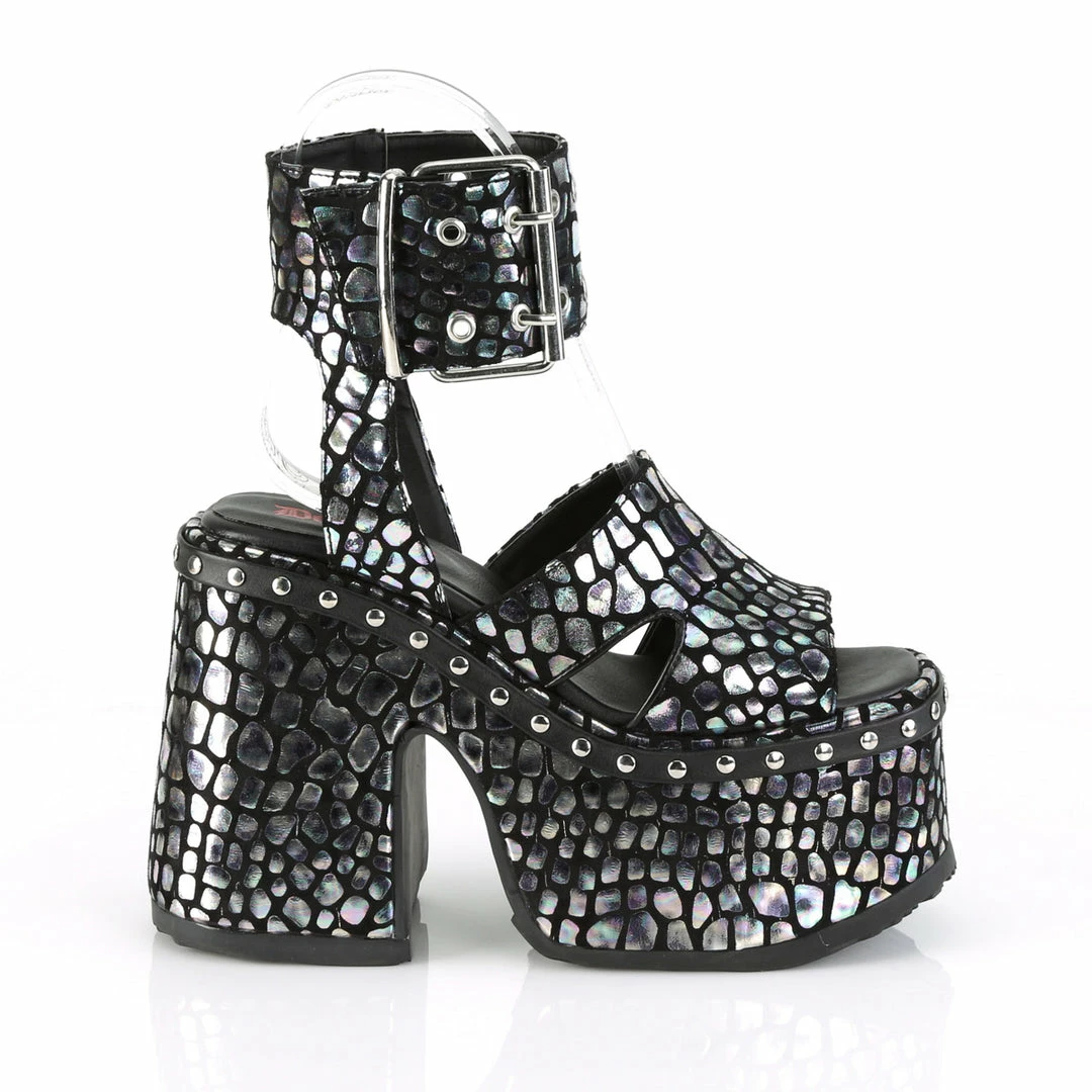 Demonia Punk & Goth CAMEL-102 – Blk Nubuck-Slv Holo Prints