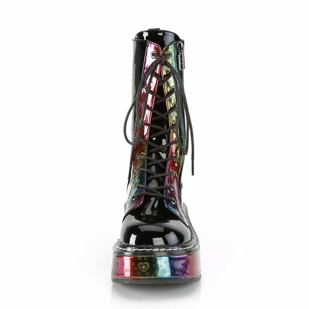 Demonia Punk & Goth EMILY-350 – Blk Pat-Rainbow Hologram W/ Hearts