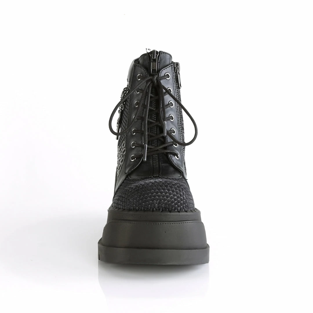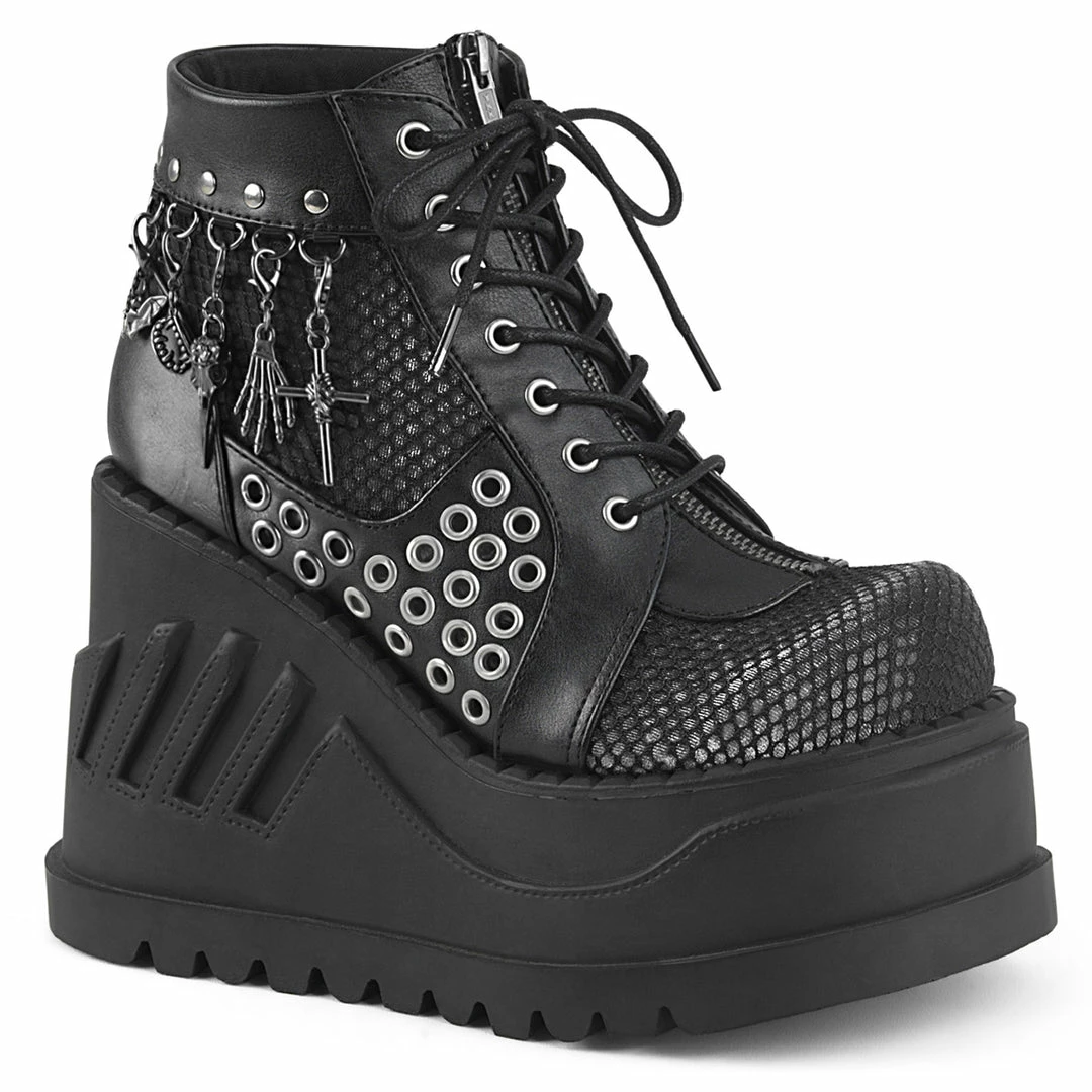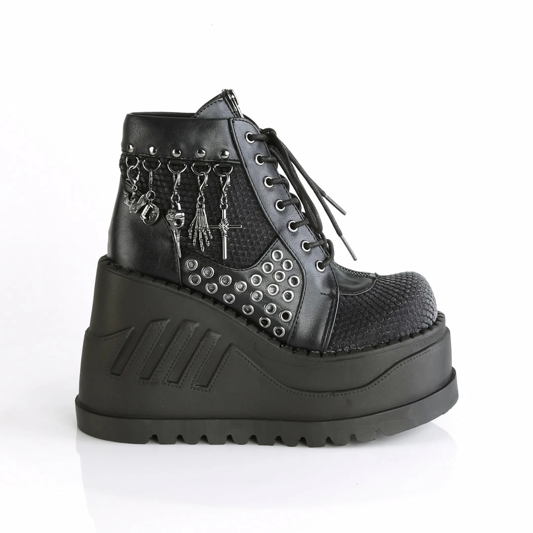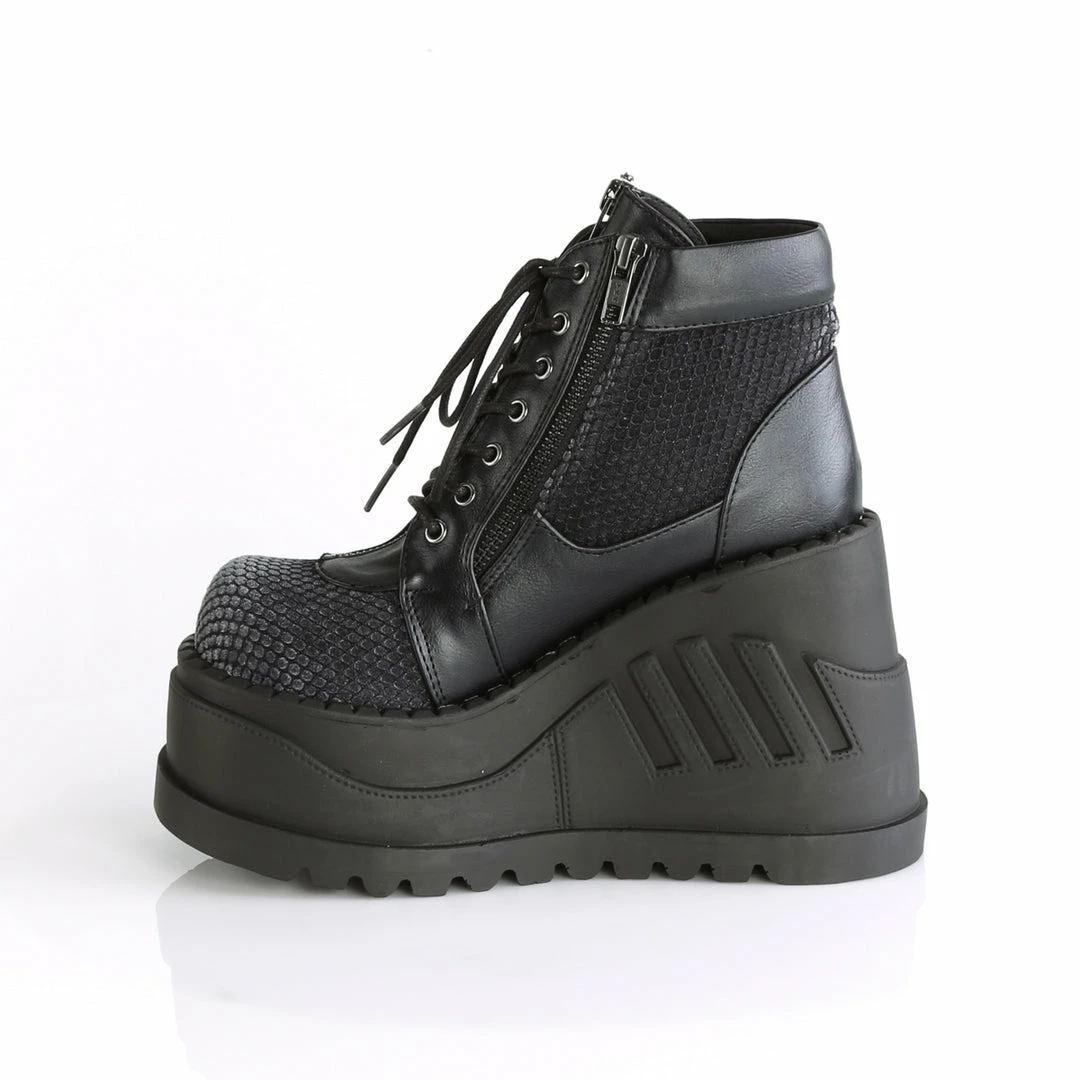 Demonia Punk & Goth STOMP-18 – Blk Vegan Leather-Grey Velvet