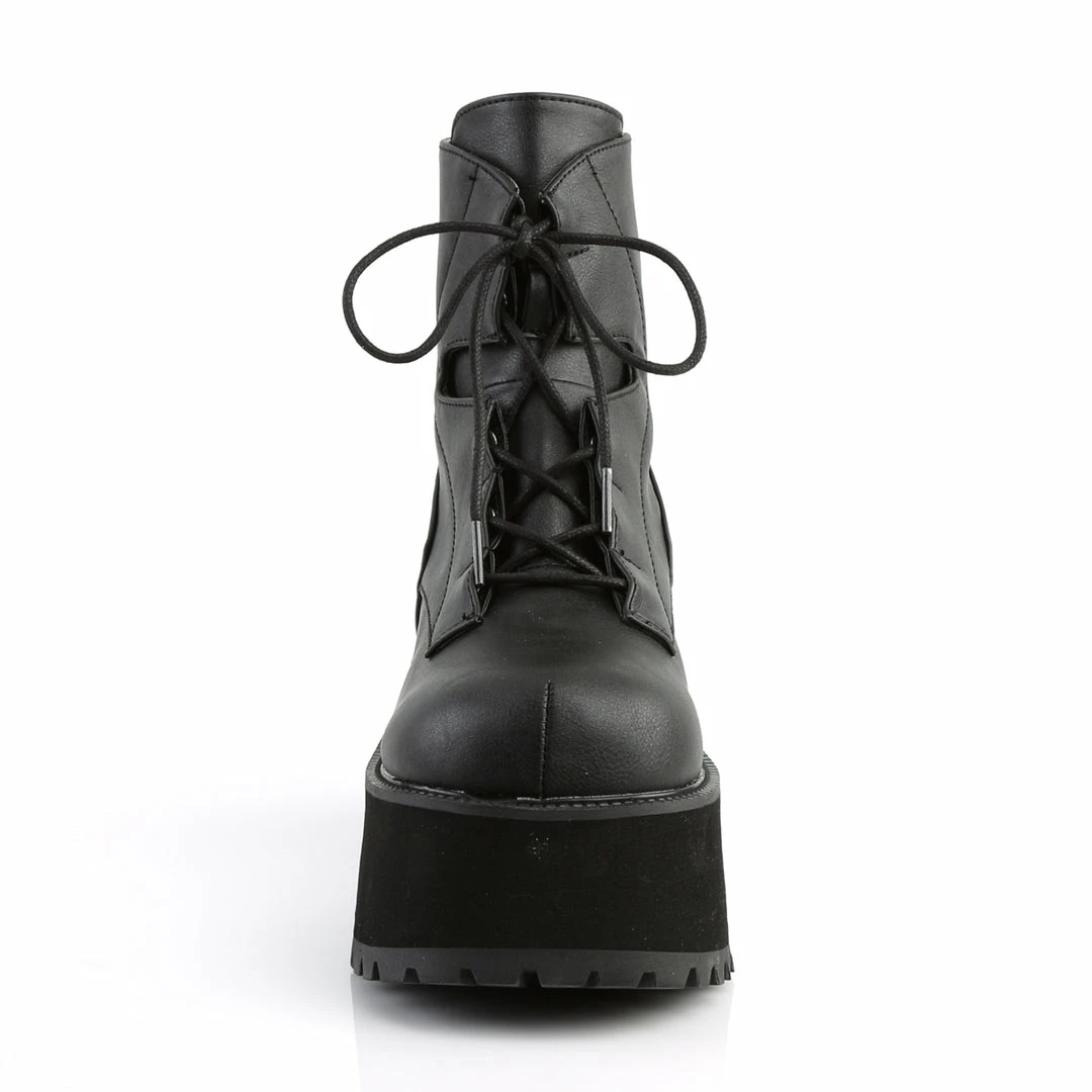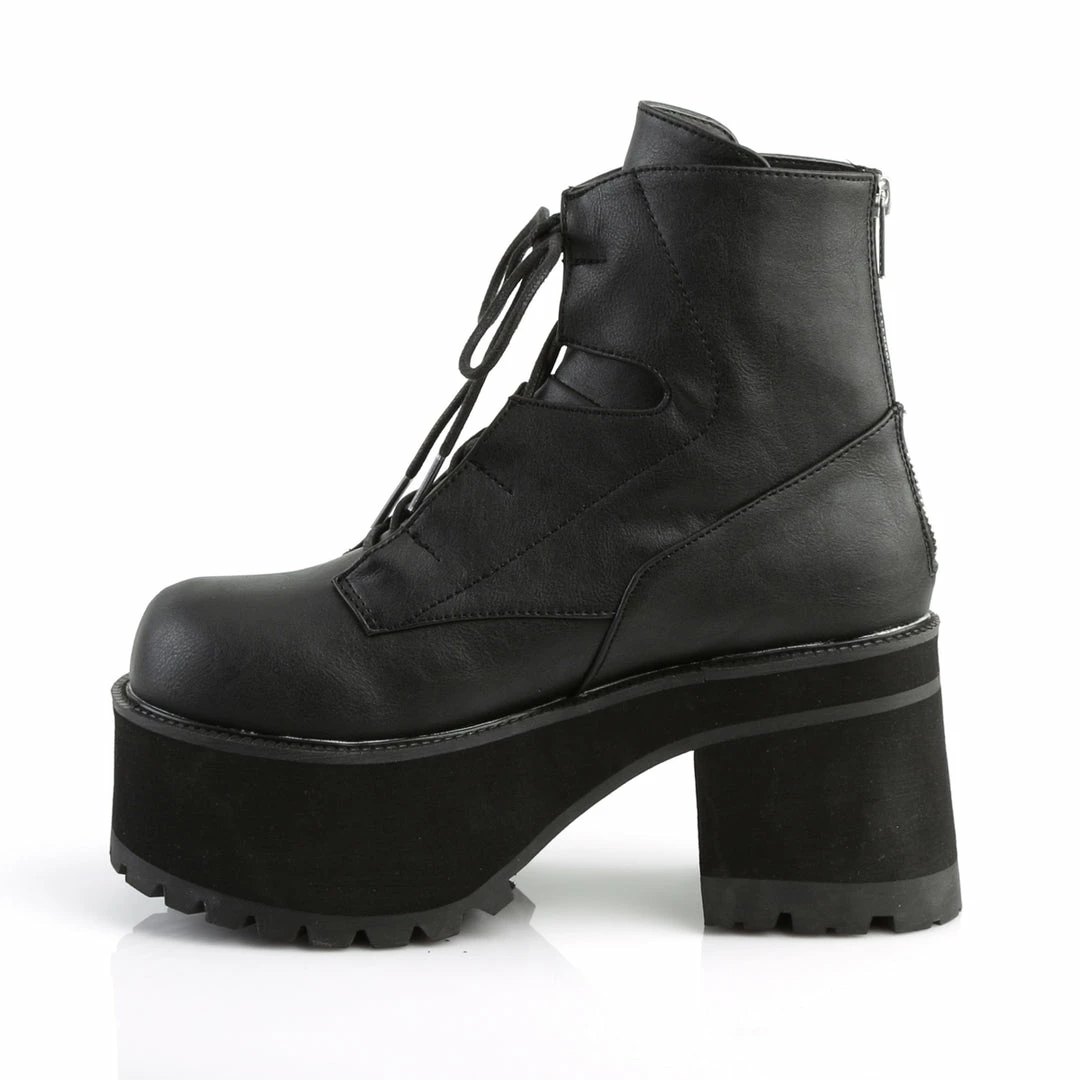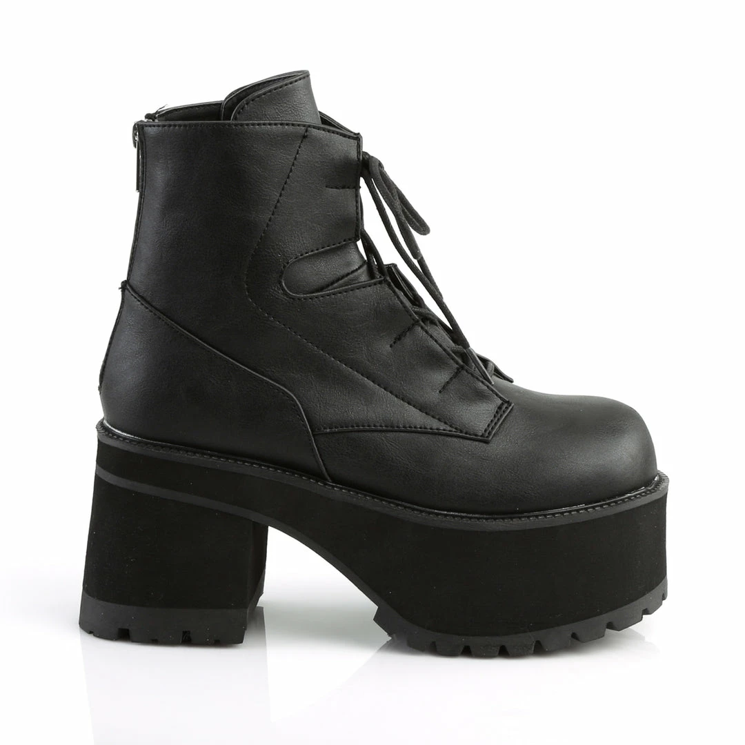 4″” (10.2cm) Heel, 2 1/2″” (6.4cm) Platform Lace-Up Front Ankle Boot, Inside Zip Closure
