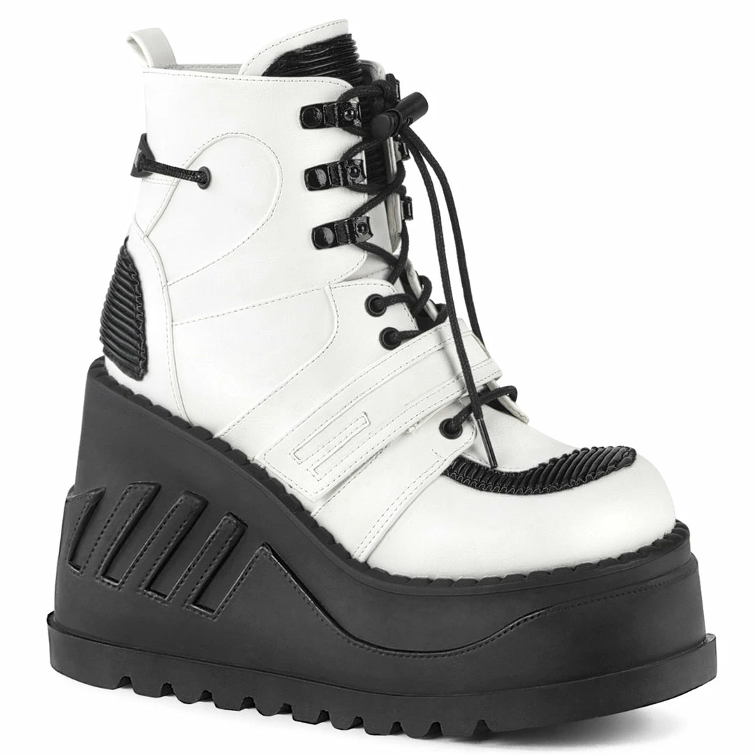 Demonia STOMP-13 – Wht Vegan Leather Punk & Goth