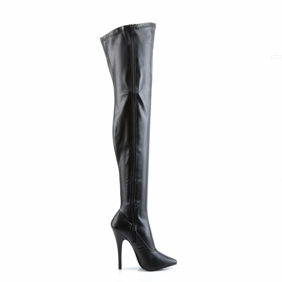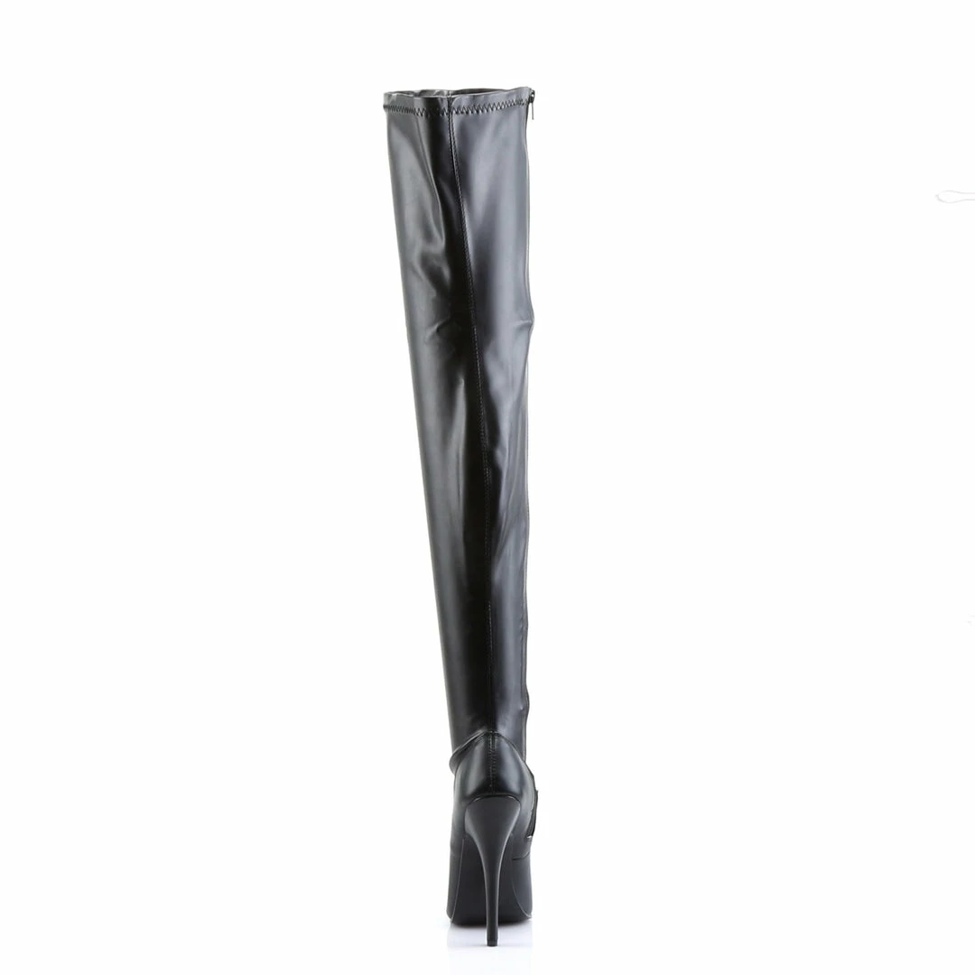 6″” (15.2cm) Heel Plain Stretch Thigh Boot, Side Zip, Full Inner Side Zipper