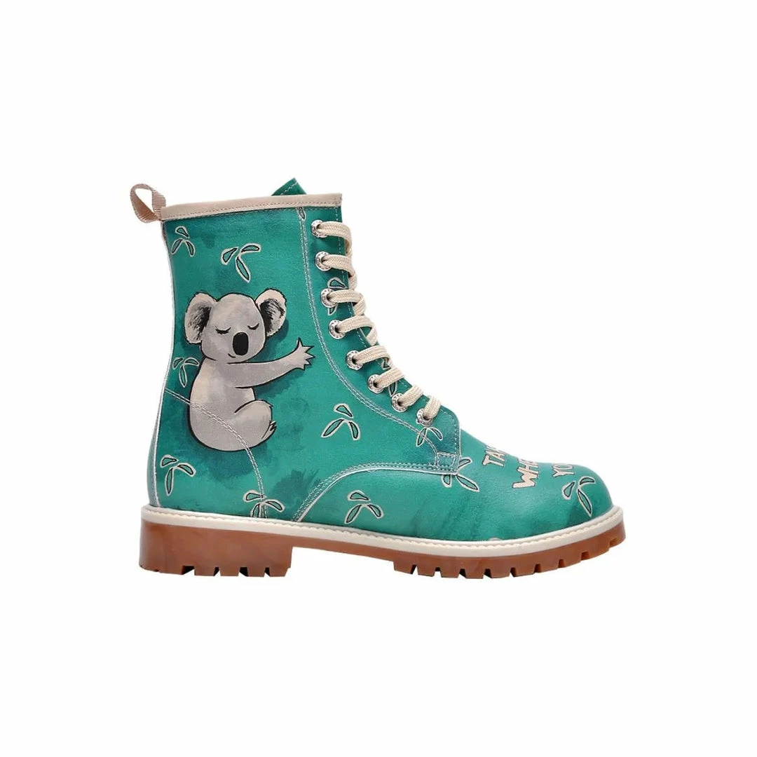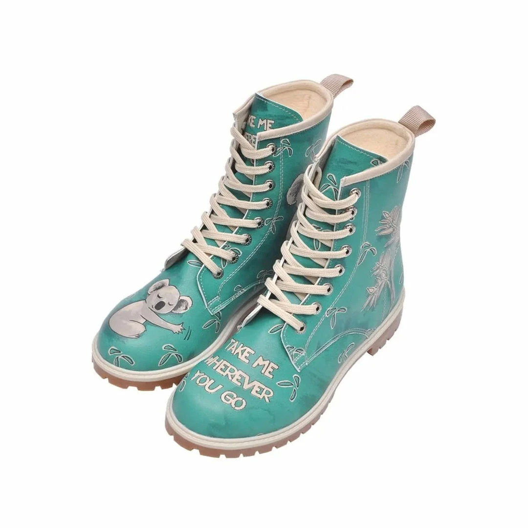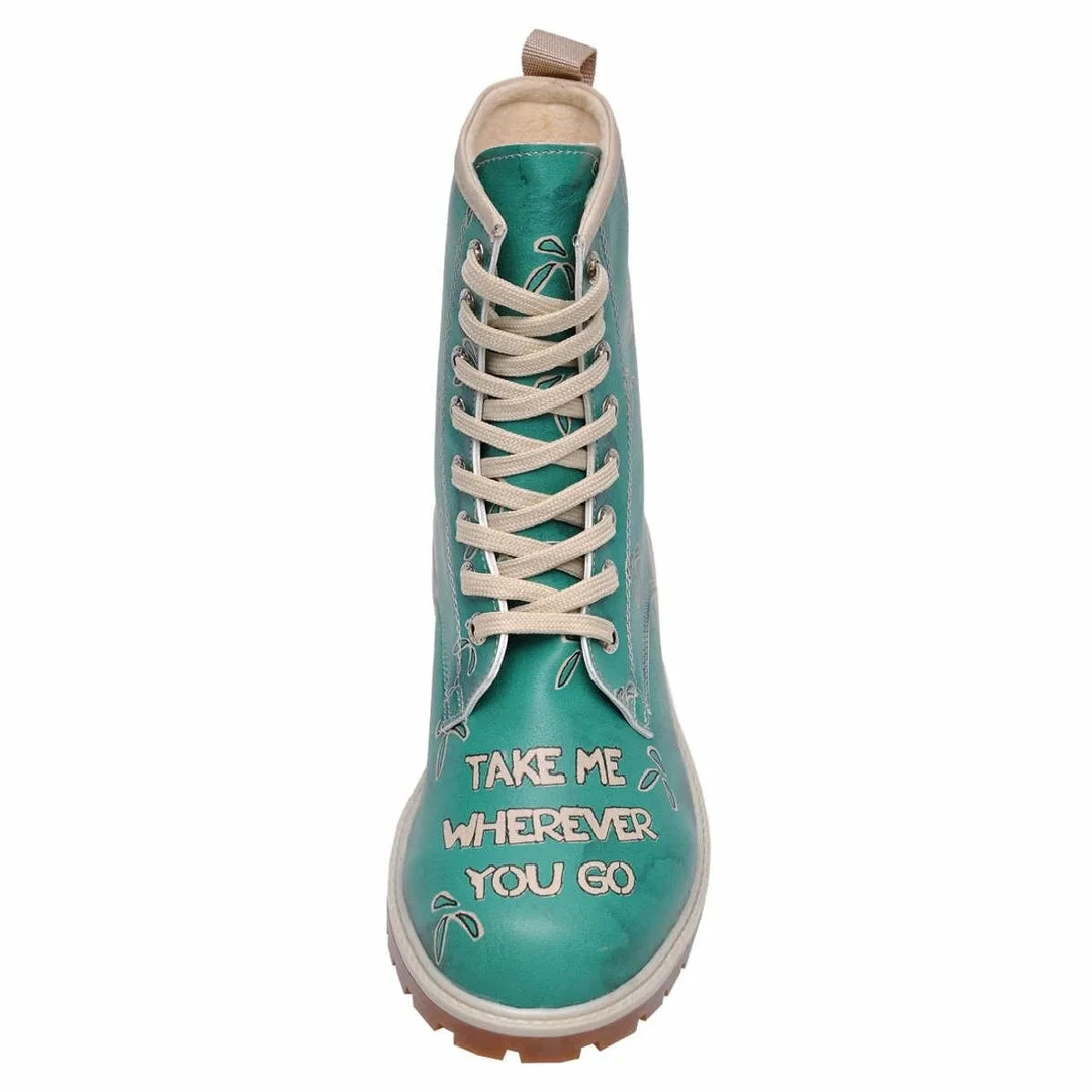 Flat shoe, lace up boots.