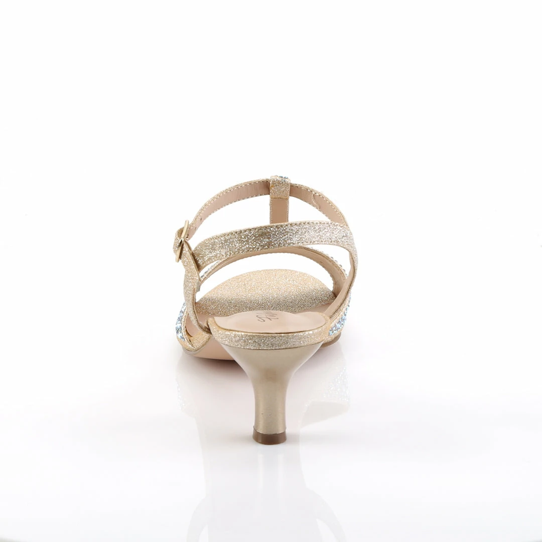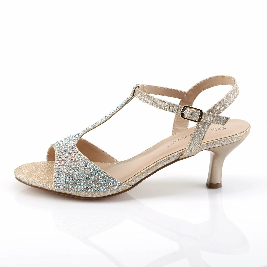 2 1/2″” (6.4cm) Kitten Heel T-Strap Sandal Embellished with Slv Multi Rhinestones Shimmering Fabric