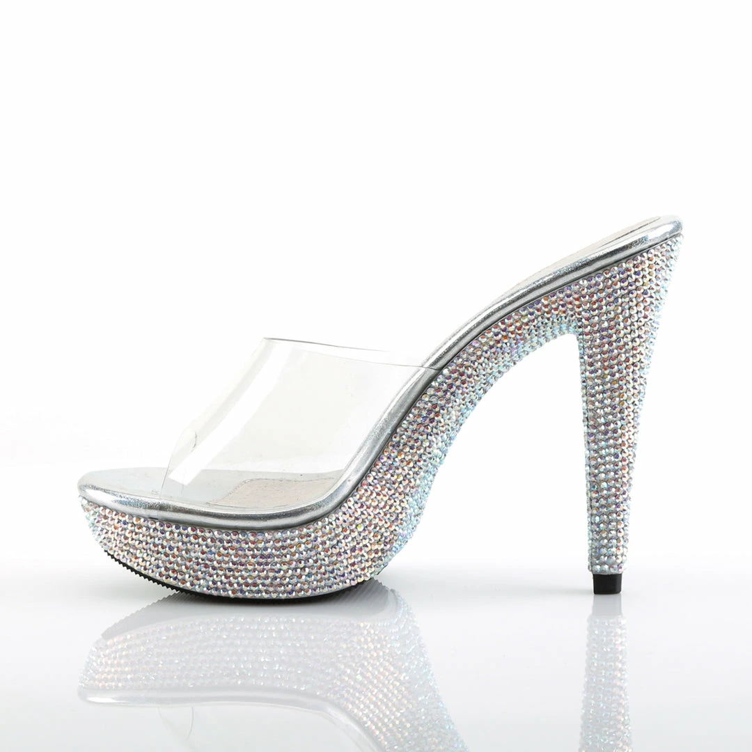 5″” (12.7cm) Heel, 1″” (2.5cm) Platform Slide Featuring Rhinestones Encrusted on the Entire Platform Bottom