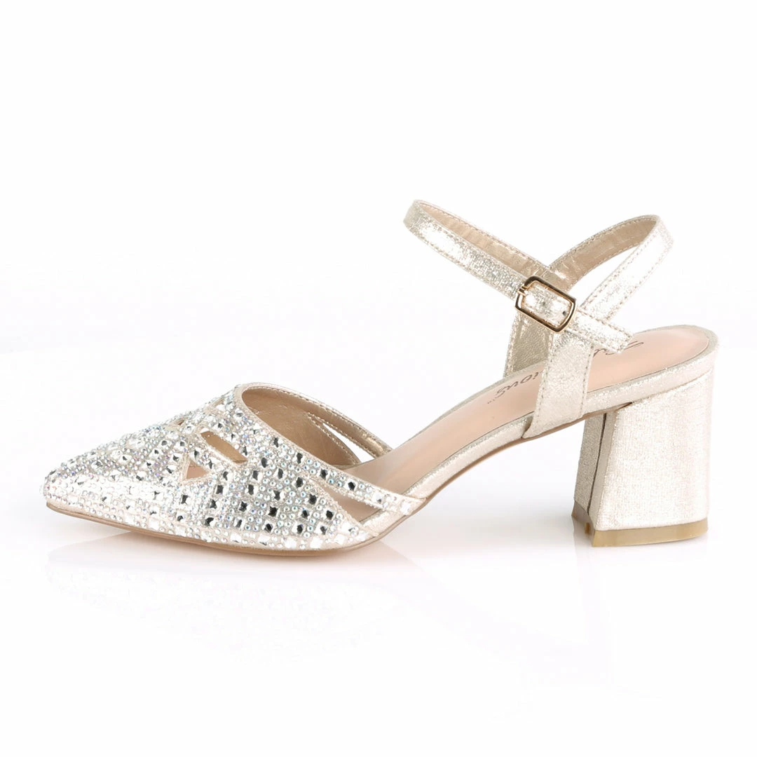 2 3/4″” (70mm) Block Heel Pointed Toe Open Back Ankle Strap Pump w/ Rhinestone Studded Vamp
