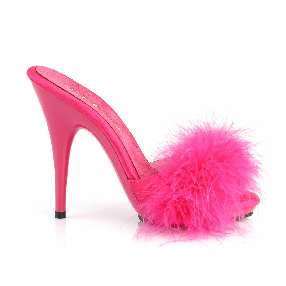 5″” (12.7cm) Heel, 3/8″” (1cm) Platform Marabou Sandal Hot Pink