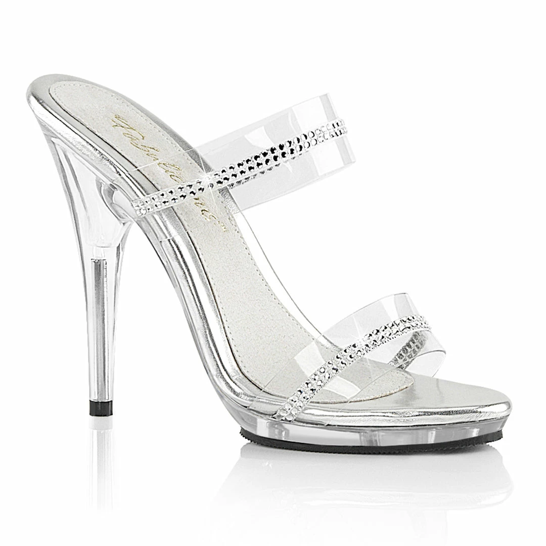 5″” (12.7cm) Heel, 3/8″” (1cm) Platform Two Band Slide W/Rhinestone Embellishments Across Vamp