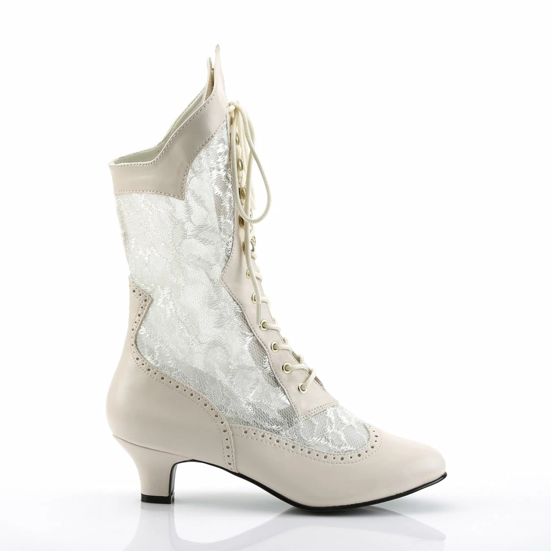 2″” (5.1cm) Heel Ankle Boot with Victorian Lace Design, No Zipper