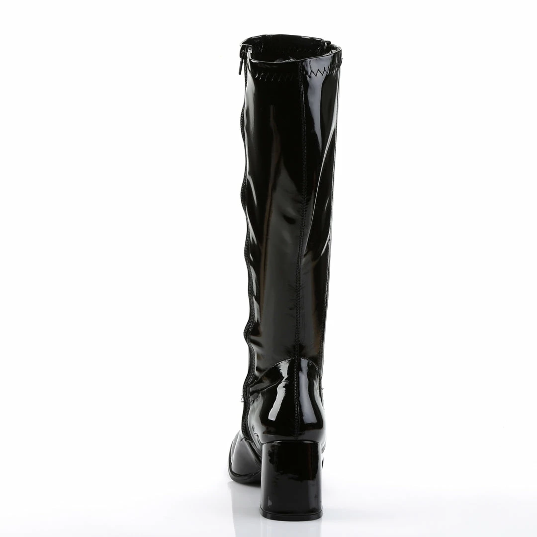 3″” (7.6cm) Block Heel Gogo Boot, Stretch Patent, with Transparent Stripe On the Outer Side, Full-Length Inside Zip Closure