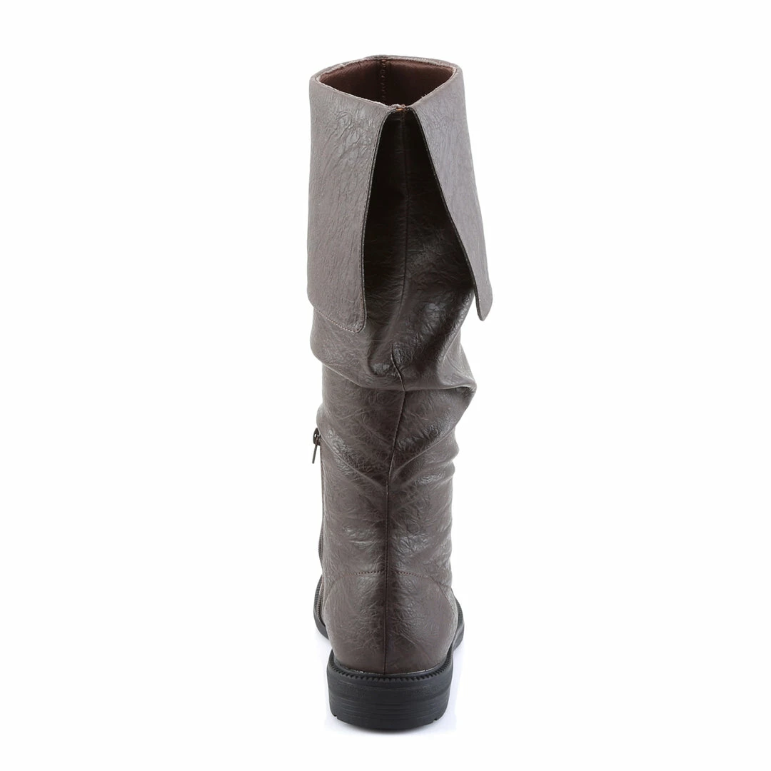 1″”(2.5cm) Flat Heel Cuffed Knee High Renaissance Boot, Inside Zip Closure