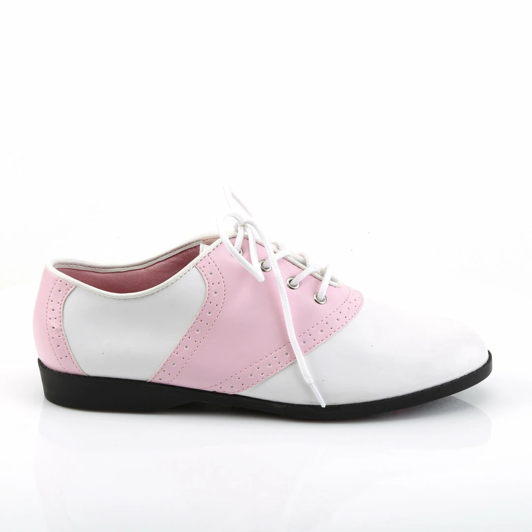Front Lace Up Flat Saddle Shoes for Retro & Grease Costumes