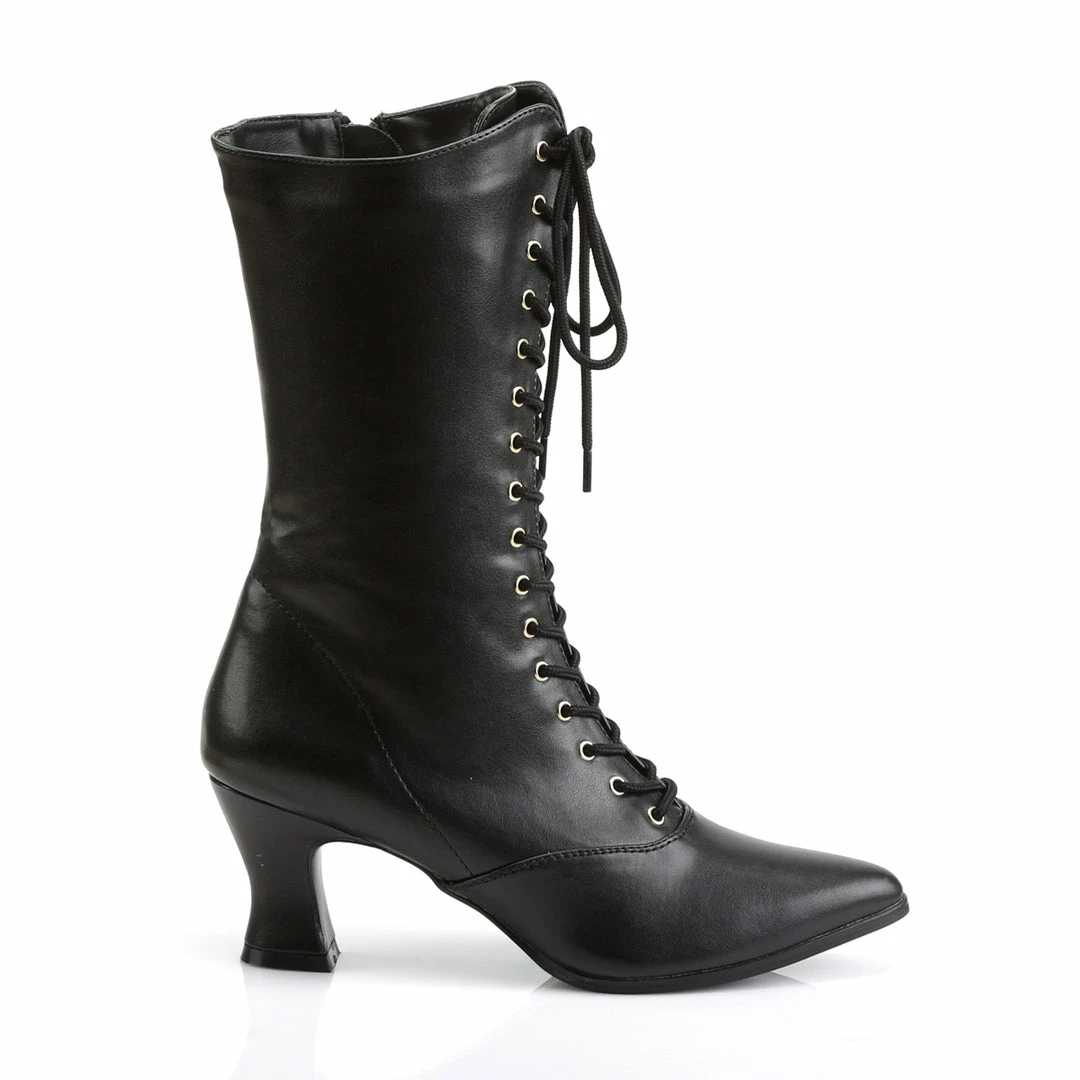 2 3/4″” (7cm) Kitten Heel Front Lace Up Mid Calf Boot with Inner Side Zipper
