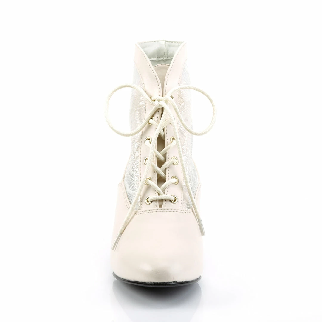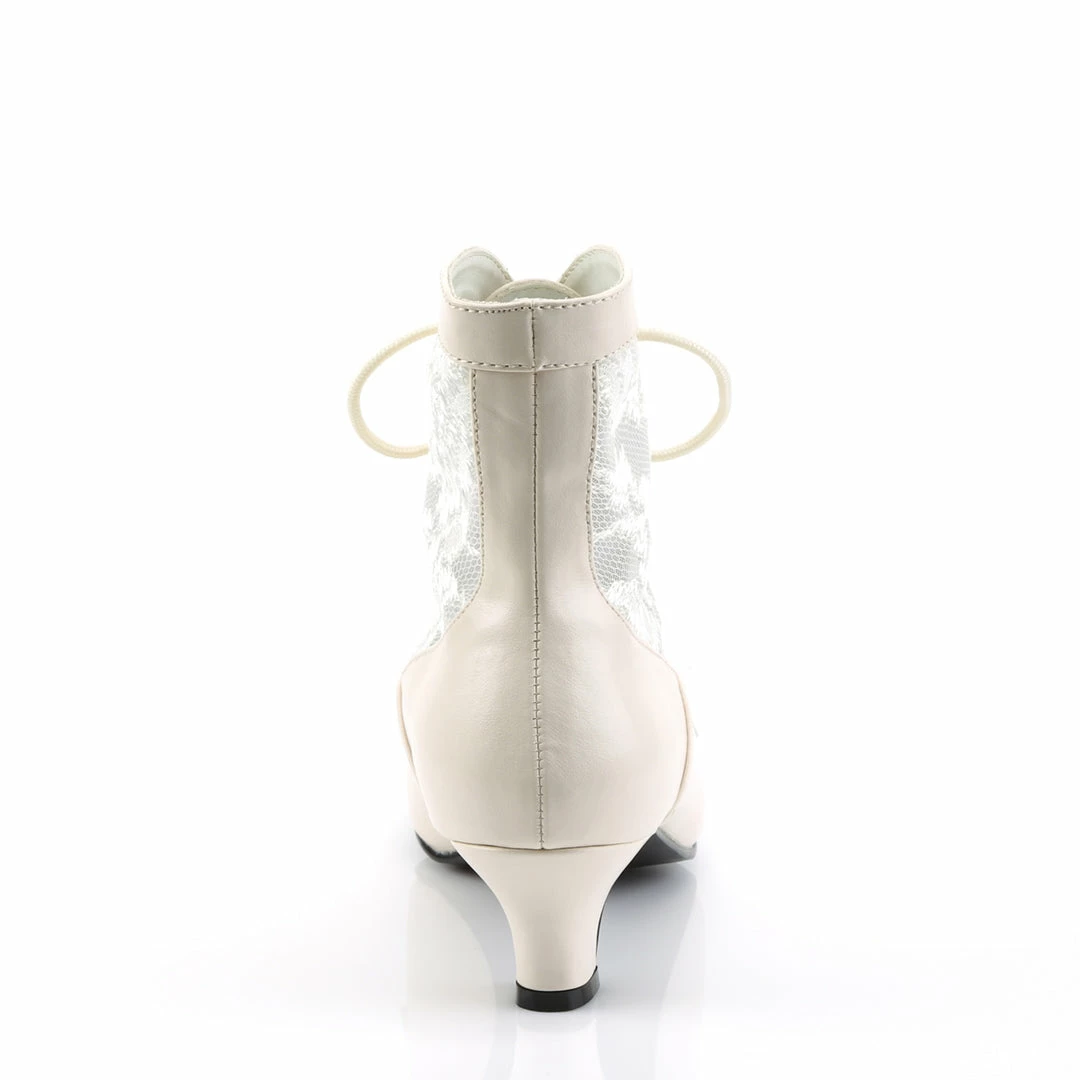 2″” (5.1cm) Heel Ankle Boot with Victorian Lace Design, No Zipper