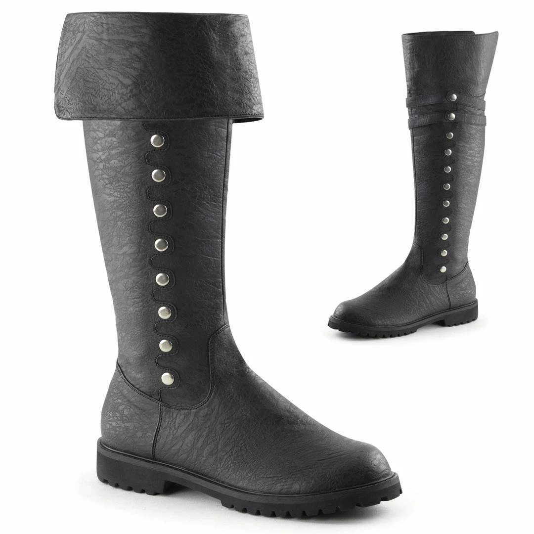 1 1/2″” (3.8cm) Men’s Cuffed Knee High Boot w/ Faux Button Detail Down the Side, 2/3 Inner Side Zipper