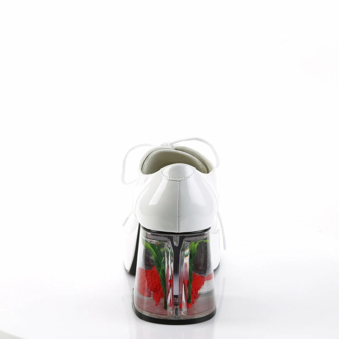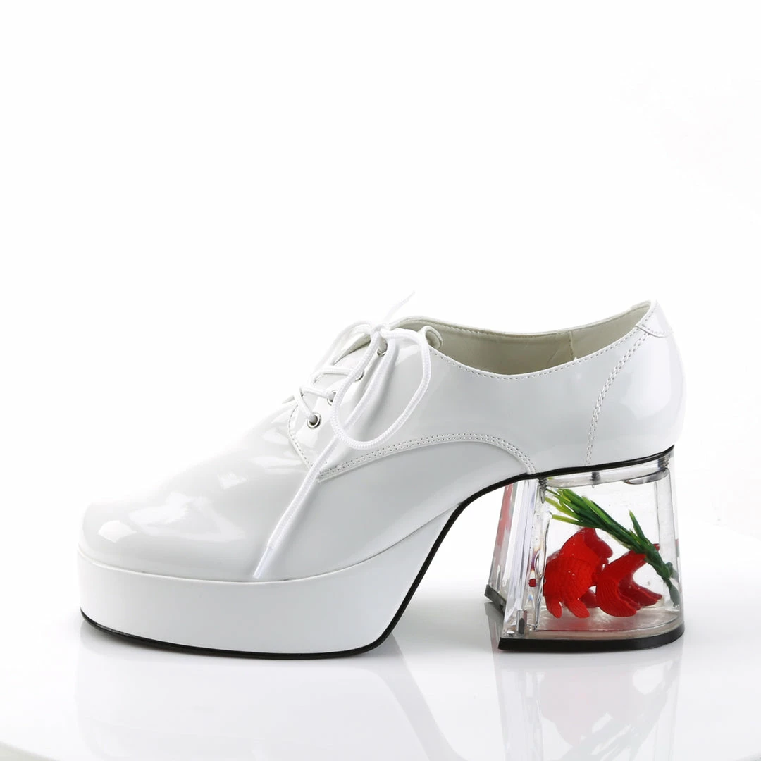 3.5″” (8.9cm) Platform, 1 1/2″” (3.8cm) Platform Men’s Disco Shoes Featuring Floating Fish Inside Heel