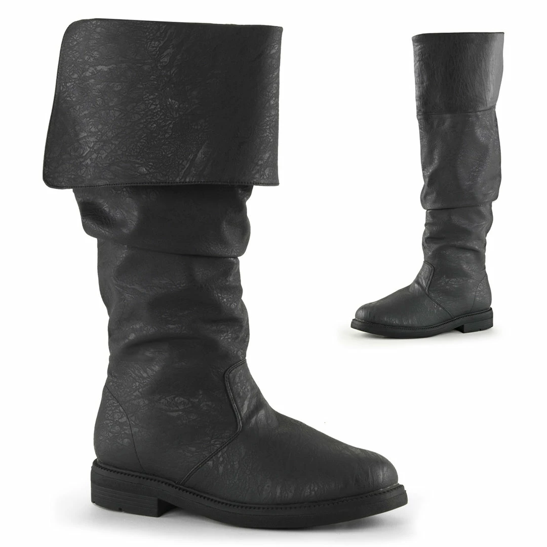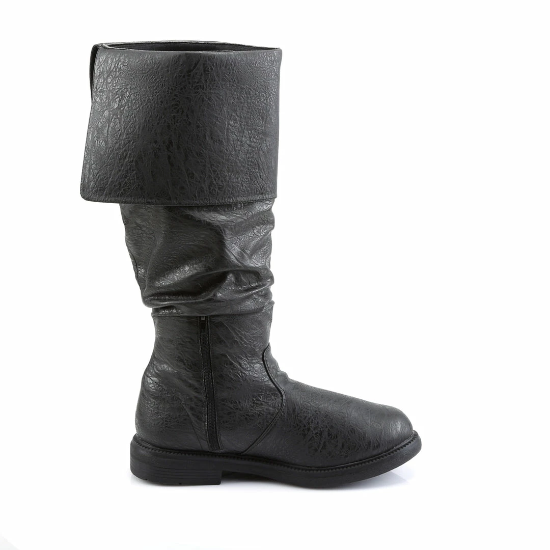 1″”(2.5cm) Flat Heel Cuffed Knee High Renaissance Boot, Inside Zip Closure