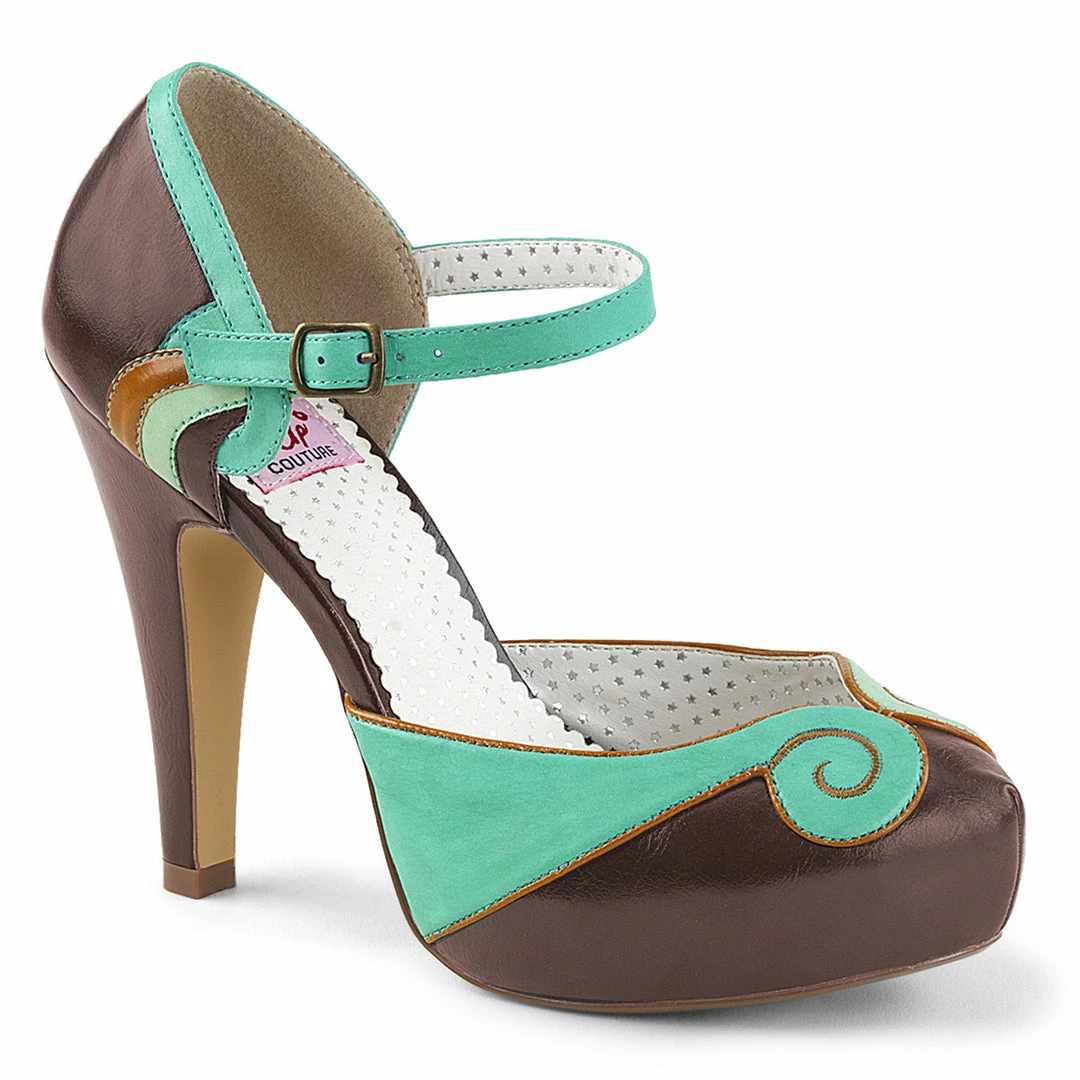 Pin Up Couture BETTIE-17 – Teal-Brown Faux Leather Vintage & Retro