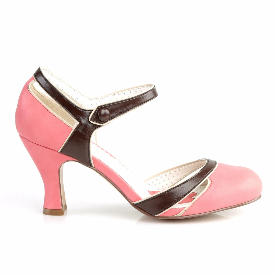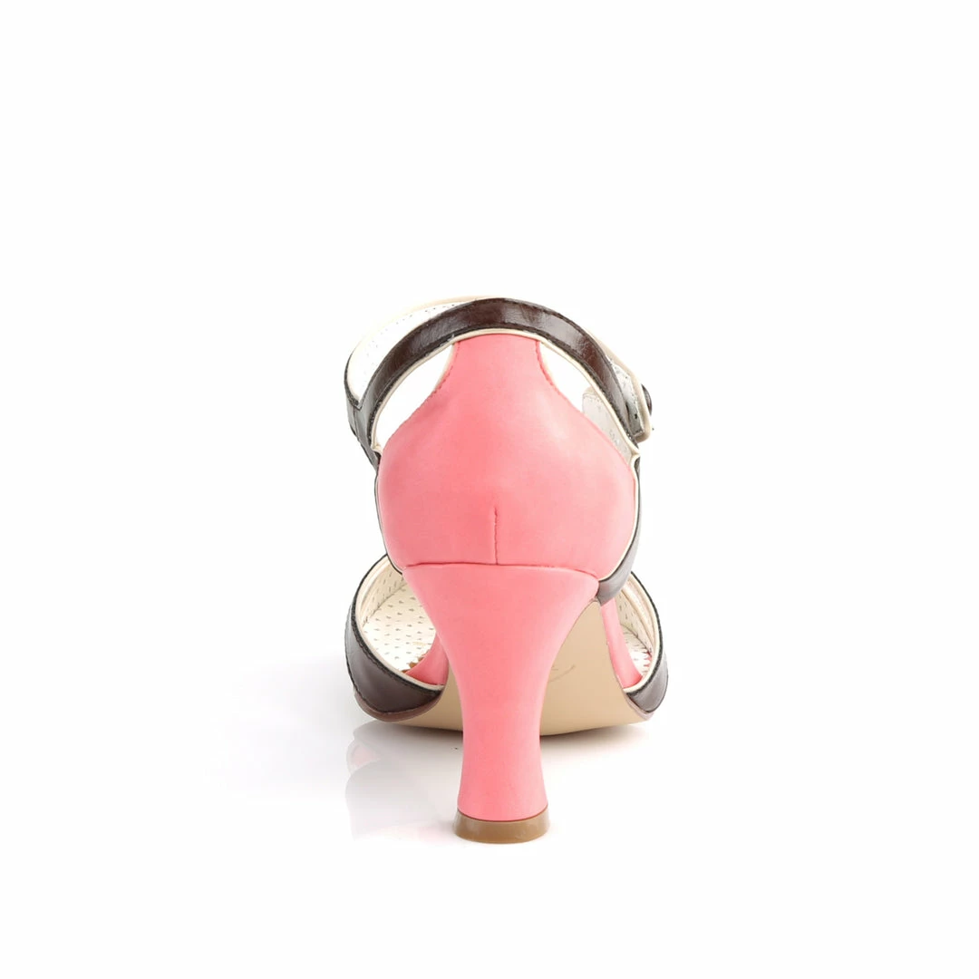 Pin Up Couture FLAPPER-27 – Salmon-D. Brown Faux Leather