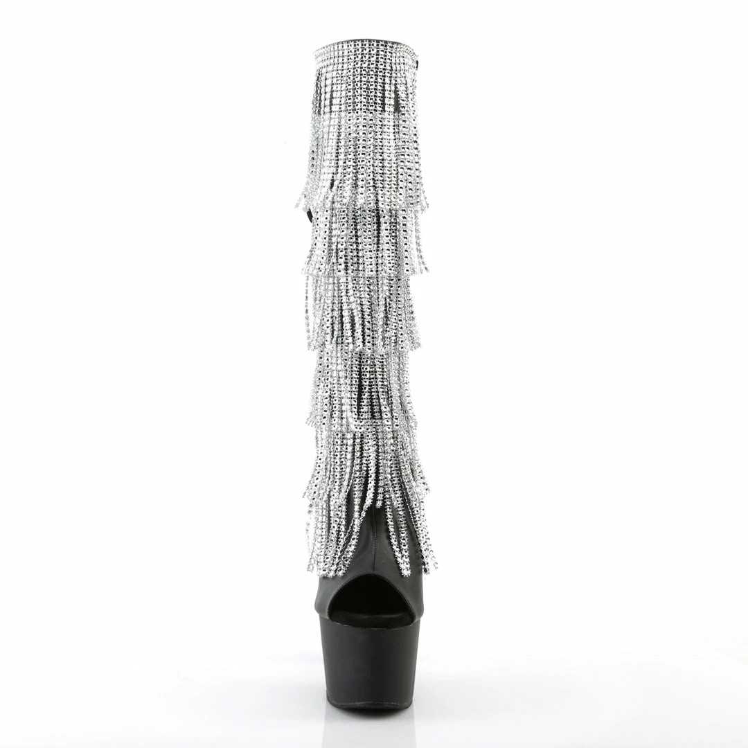 7″ (17.8cm) Stiletto Heel, 2 3/4″ (7cm) Platform Open Toe/Stiletto Heel Lace-Up Knee High Boot Featuring 6-Layer Simulated Rhinestone Fringe, Inside Zip Closure