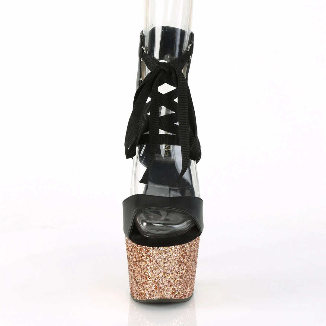 Pleaser ADORE-700-14LG – Blk Faux Leather/Rose Gold Multi Glitter Exotic Dancing