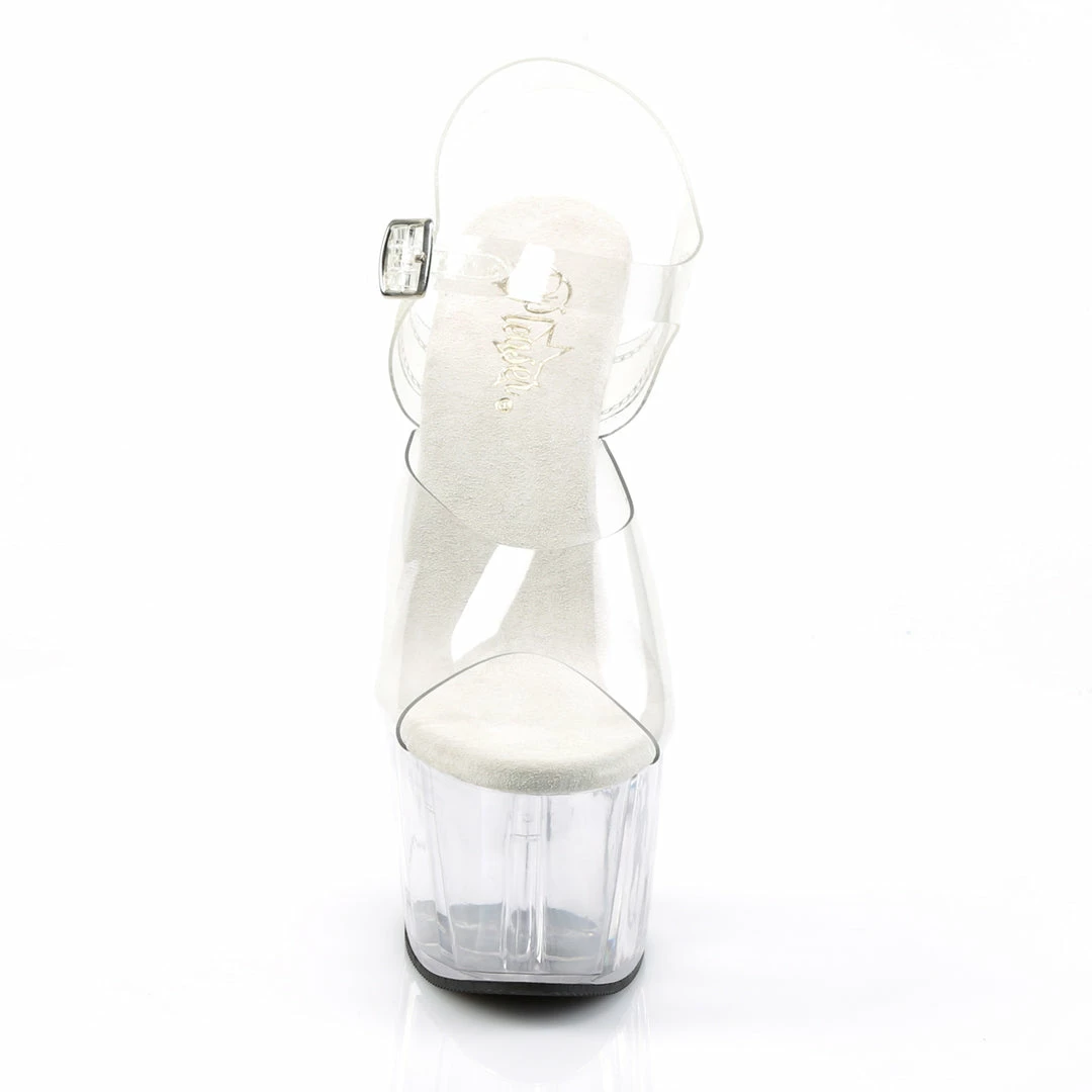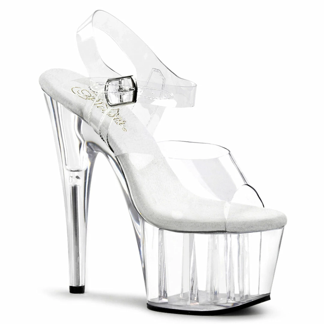 7″” (17.8cm) Stiletto Heel, 2 3/4″” (7cm) Platform Ankle Strap Sandal