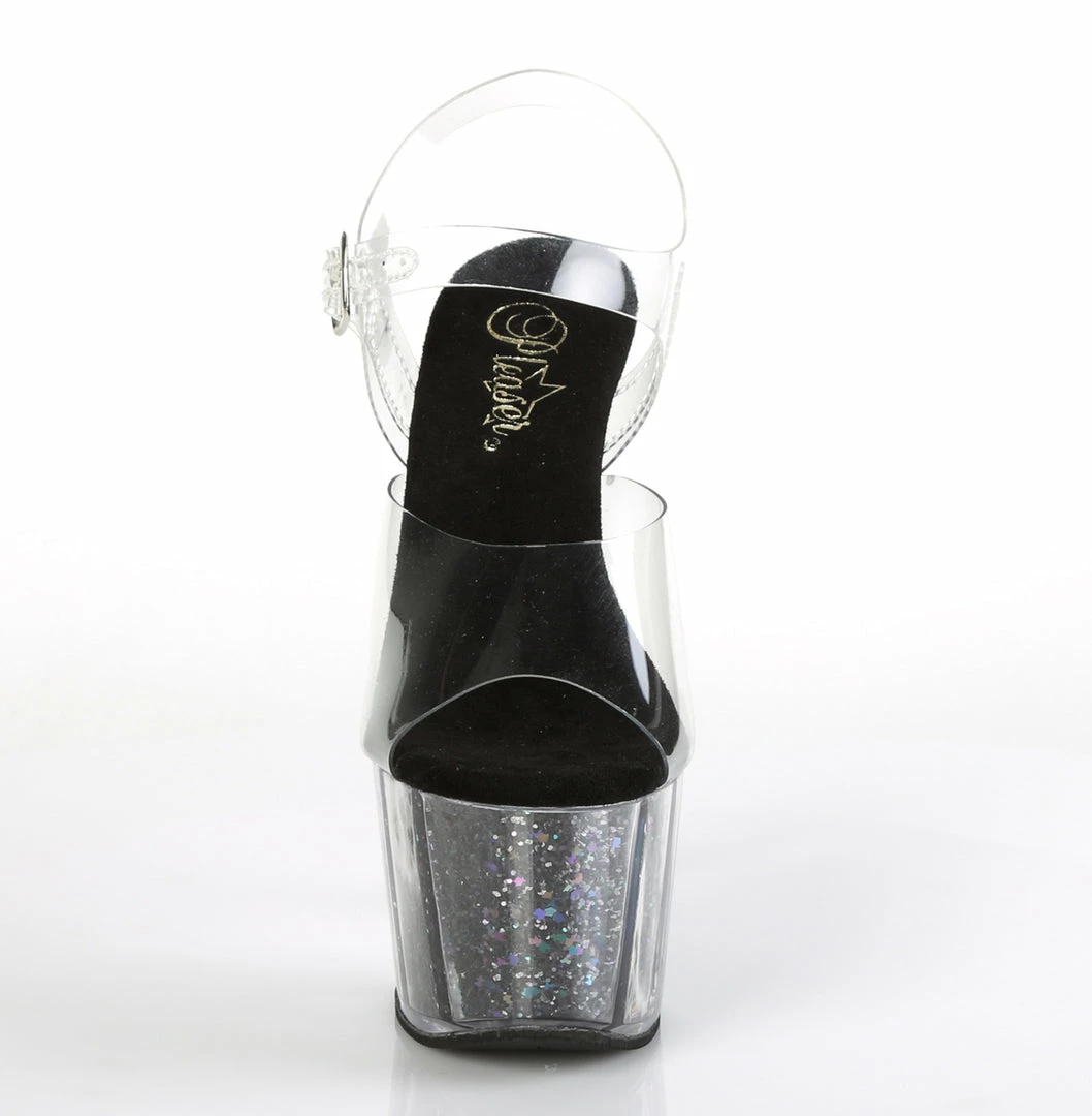 Pleaser ADORE-708CG – Clr/Blk Confetti Glitter