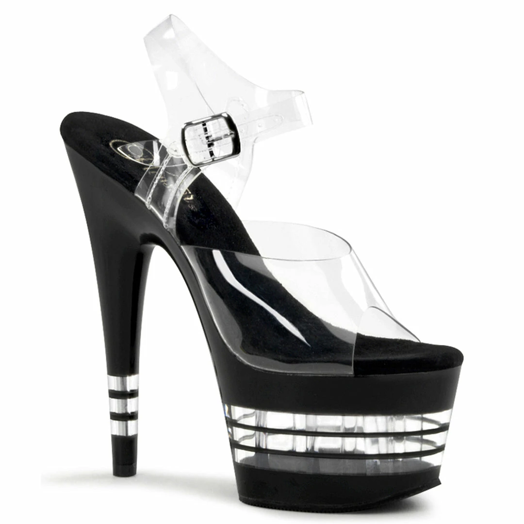 7″” (17.8cm) Stiletto Heel, 2 3/4″” (7cm) Platform Ankle Strap Sandal Featuring Clear Stripe on Platform