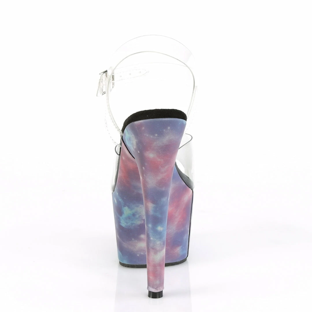 7″” (178mm) Heel, 2 3/4″” (70mm) Platform Ankle Strap Sandal Featuring Reflective Galaxy Effect Wrapped Platform Bottom