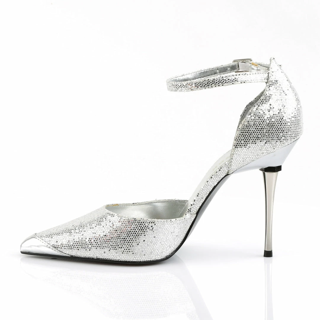 4″” (10.2cm) Metal Stiletto Heel Ankle Strap Pointed Toe D’Orsay Pump with Ankle Strap
