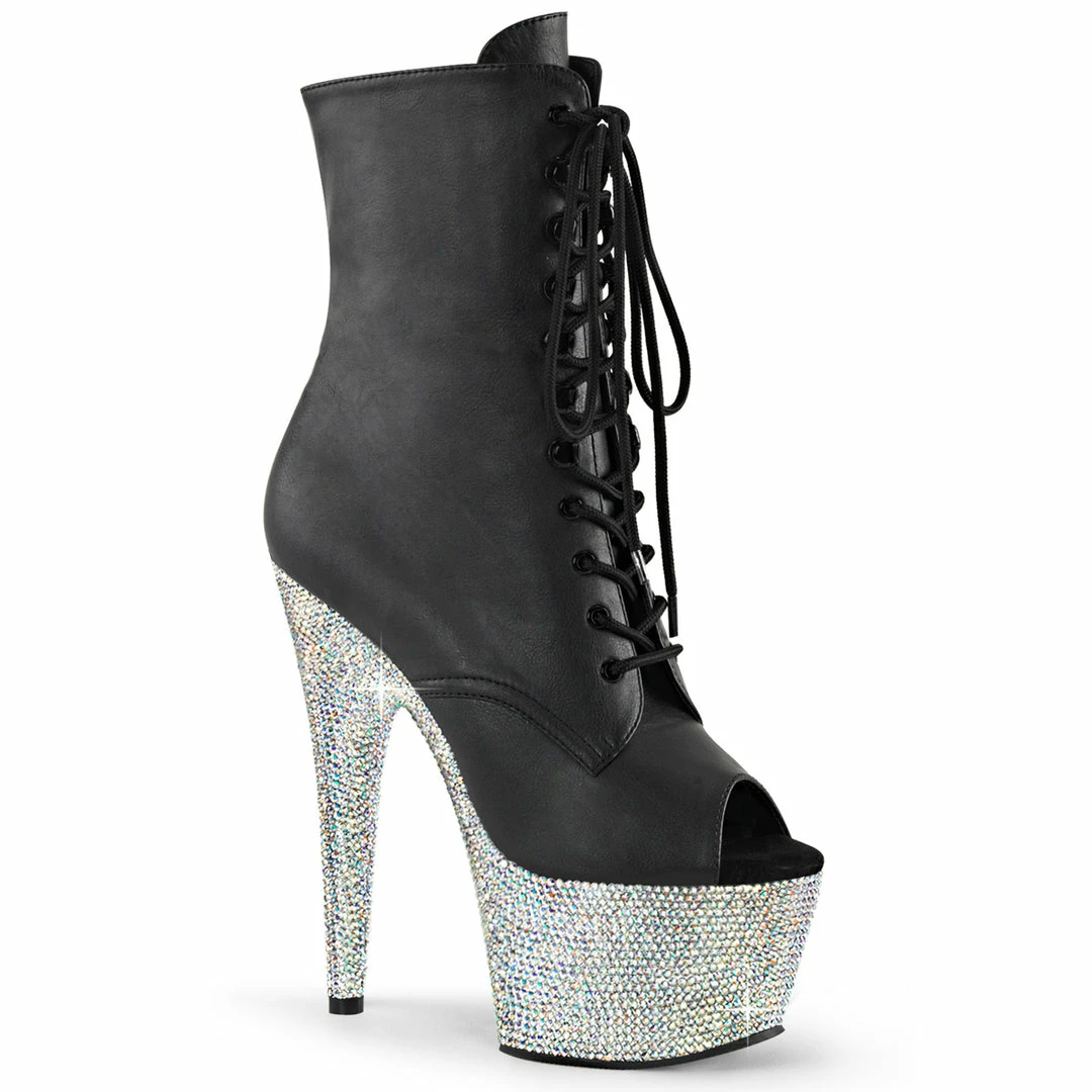 Pleaser BEJEWELED-1021-7 – Blk Faux Leather/Slv AB RS