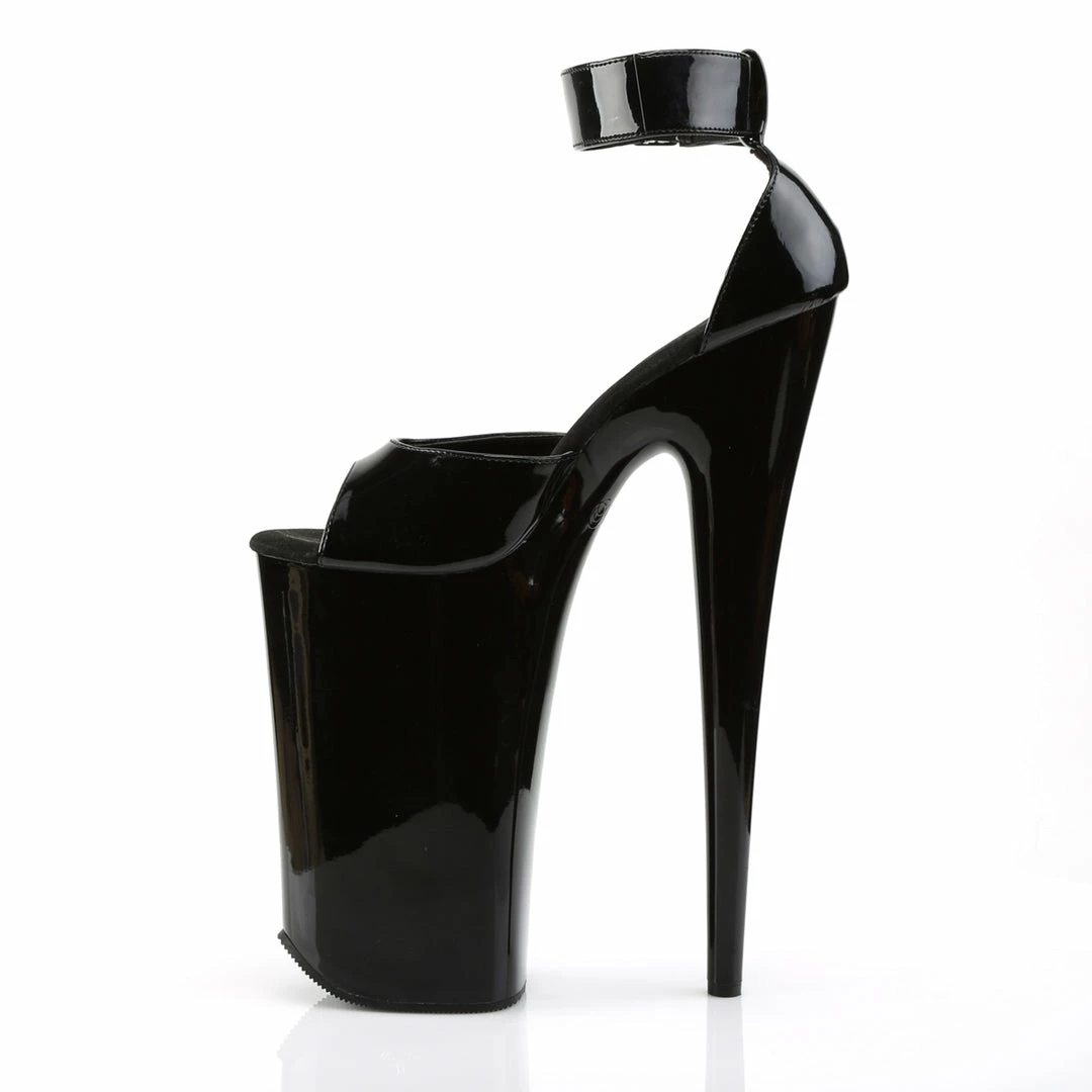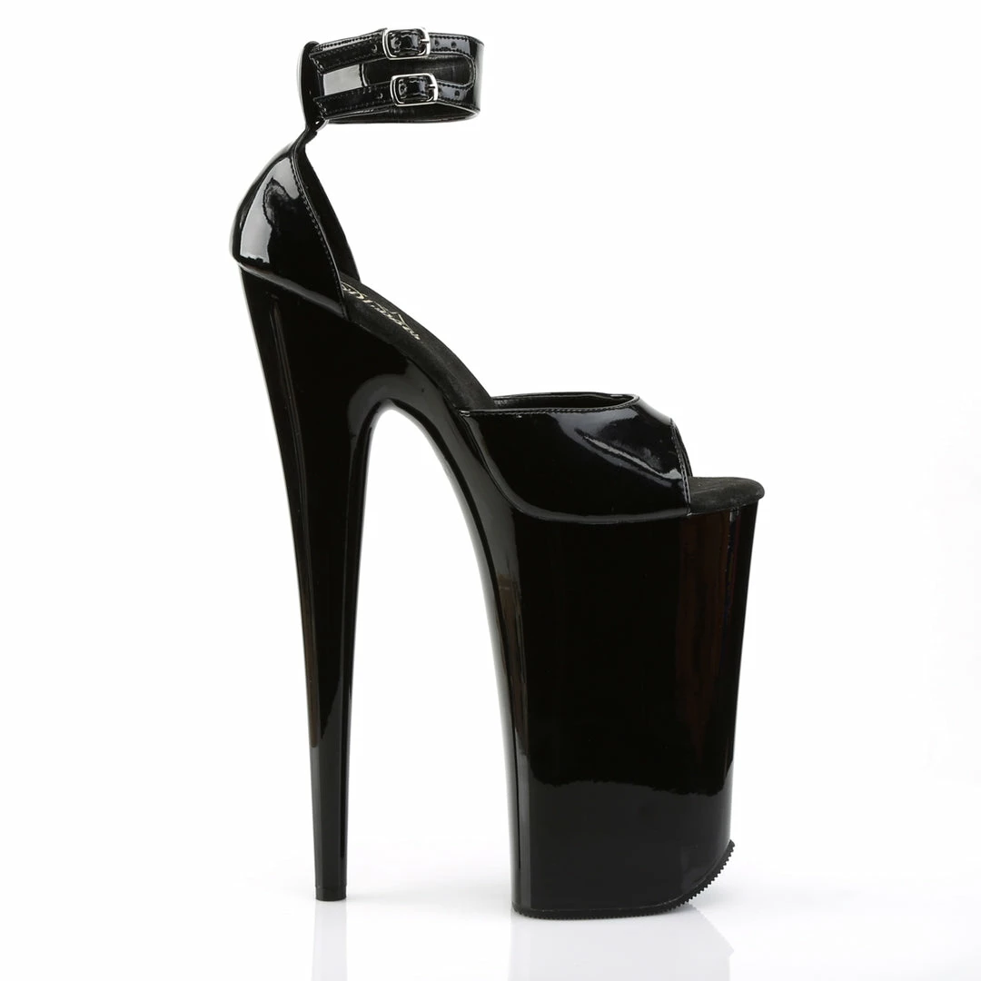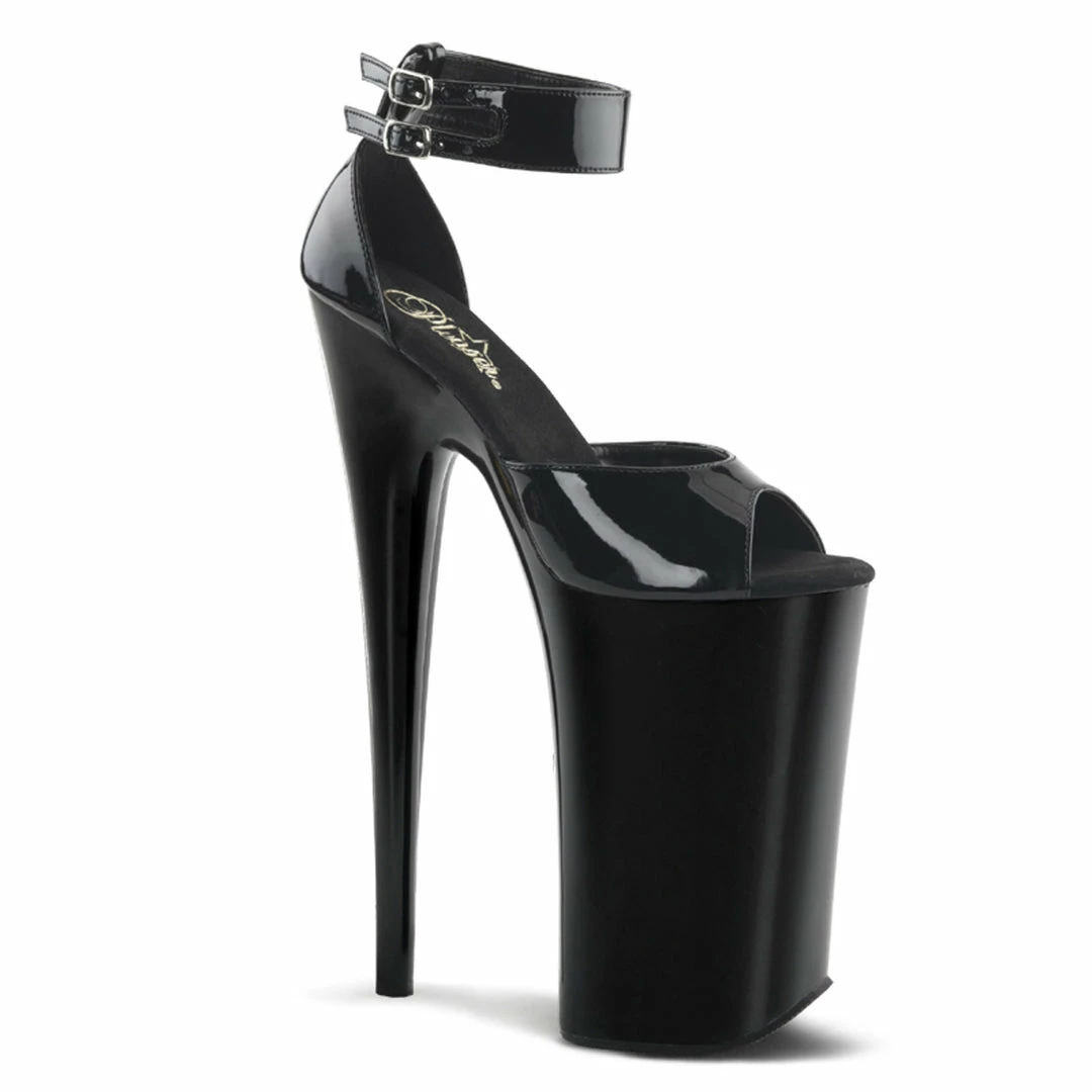 10″ (25.4cm) Heel, 6 1/4″ (15.9cm) Platform Close Back D’ Orsay Sandal Featuring Double Buckled Ankle Strap Warning: Extreme High Heels. Not Recommended for Walking or Dancing.