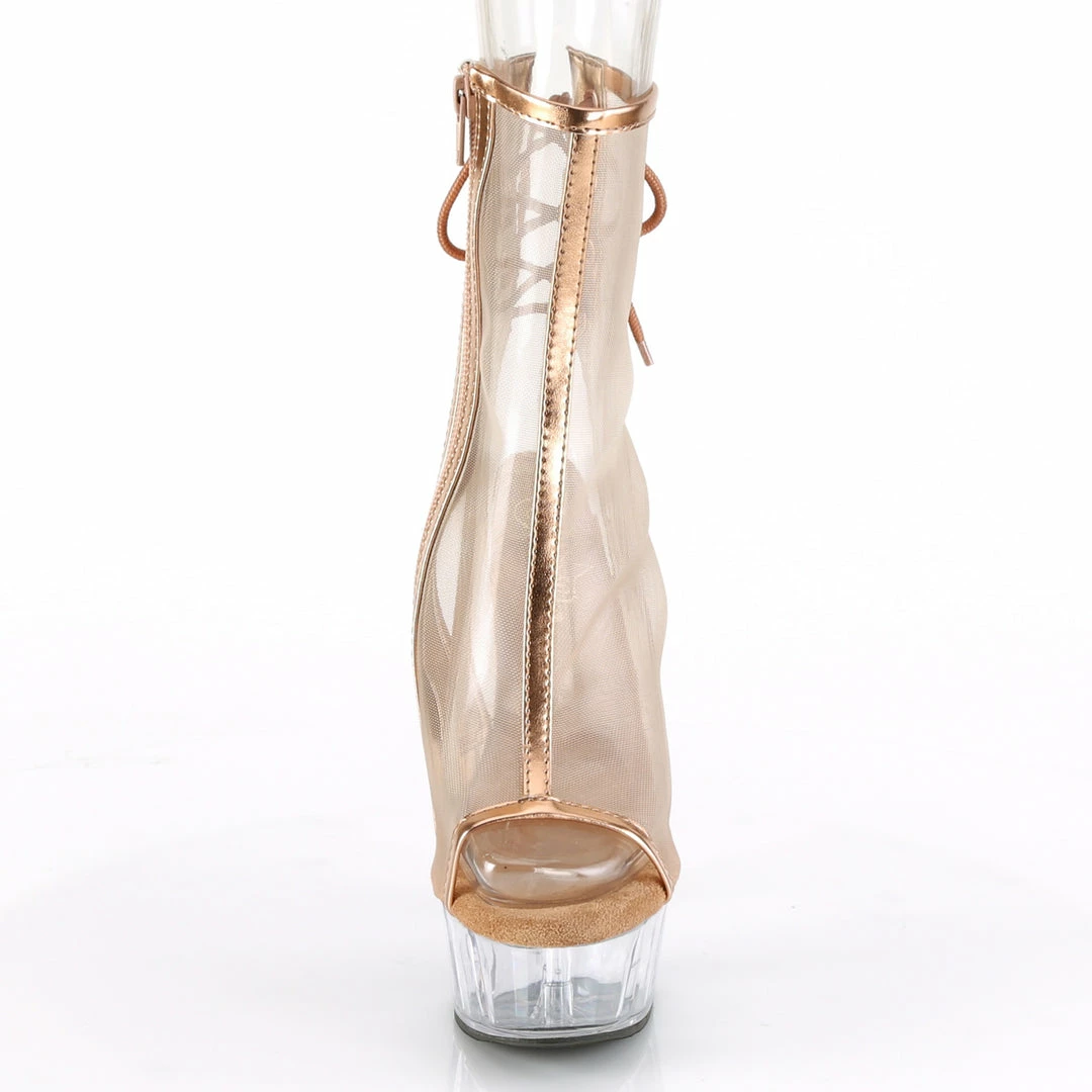 Pleaser DELIGHT-1018MSH – Rose Gold Metallic Pu-Mesh/Clr Exotic Dancing