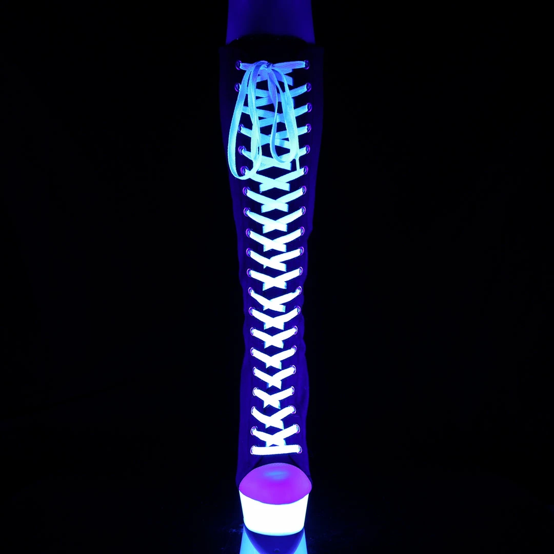 Pleaser DELIGHT-2000SK-02 – Blk Canvas-White Faux Leather/Neon White Exotic Dancing