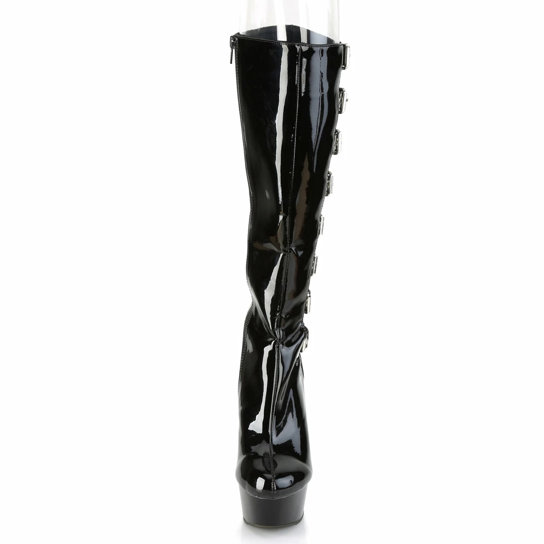 6″” (152mm) Heel, 1 3/4″” (45mm) Platform Open Side Knee High Boot Featuring Multiple Buckles, Inside Zip Closure