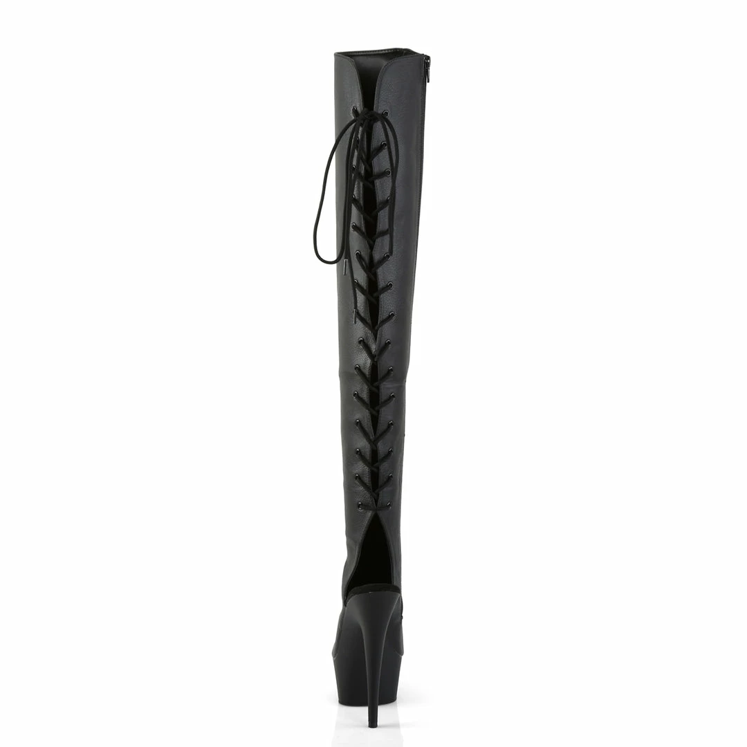 6″” (15.2cm) Stiletto Heel, 1 3/4″” (4.5cm) Platform Open Toe/Heel Lace-Up Back Thigh High Boot, Full Inner Side Zipper