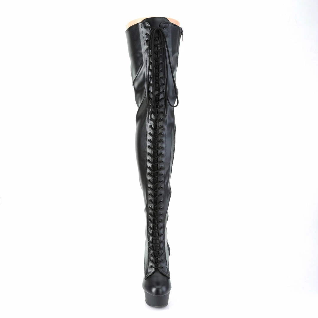 6″” (15.2cm) Stiletto Heel, 1 3/4″” (4.5cm) Platform Lace-Up Stretch Thigh High Boot, Full Inner Side Zipper