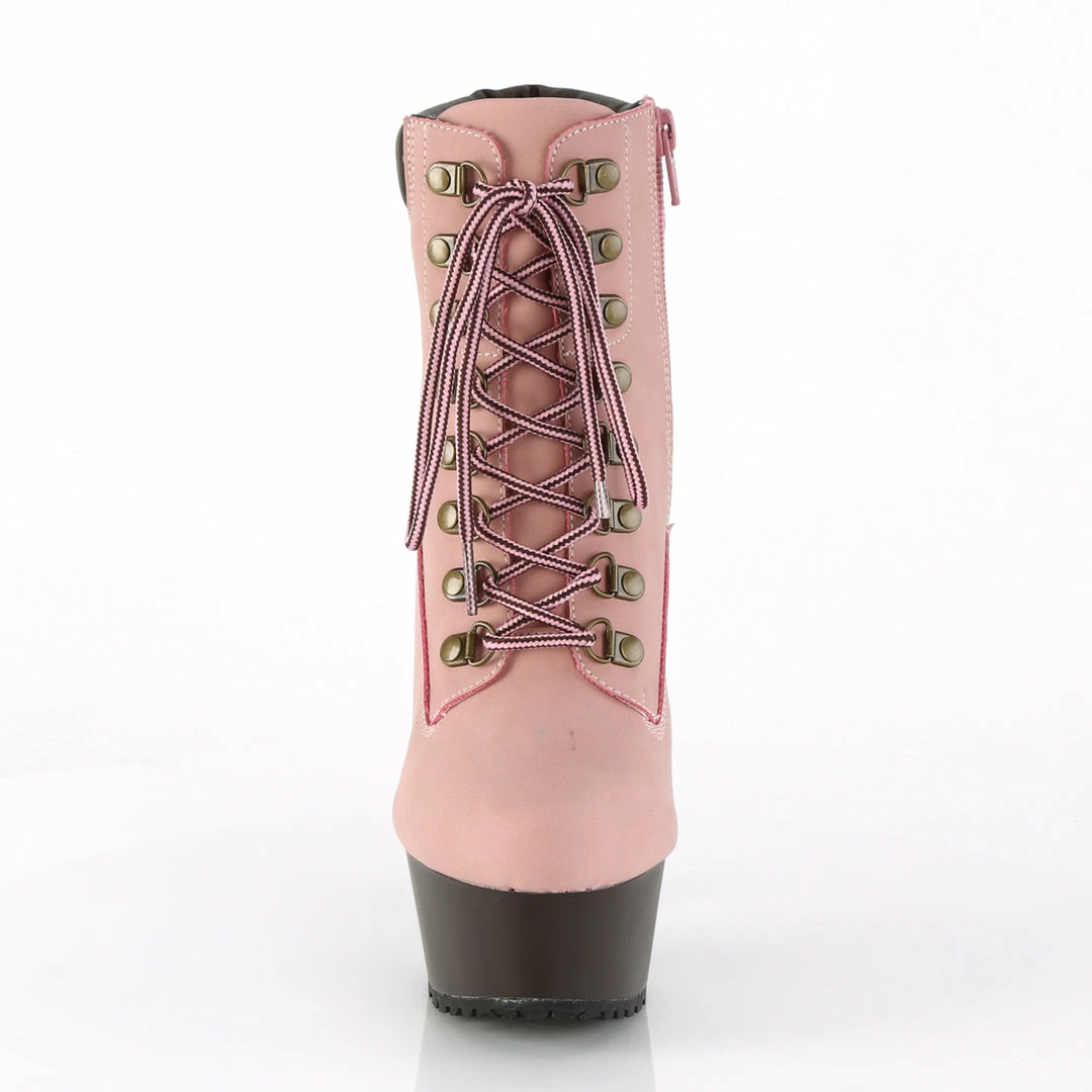 Pleaser DELIGHT-600TL-02 – B. Pink Nubuck Faux Leather/D. Brown Matte