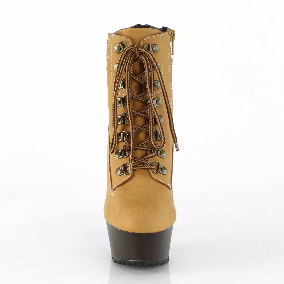 Pleaser DELIGHT-600TL-02 – Tan Nubuck Faux Leather/Dark Brown Matte Exotic Dancing