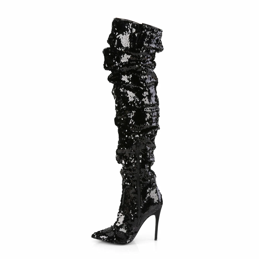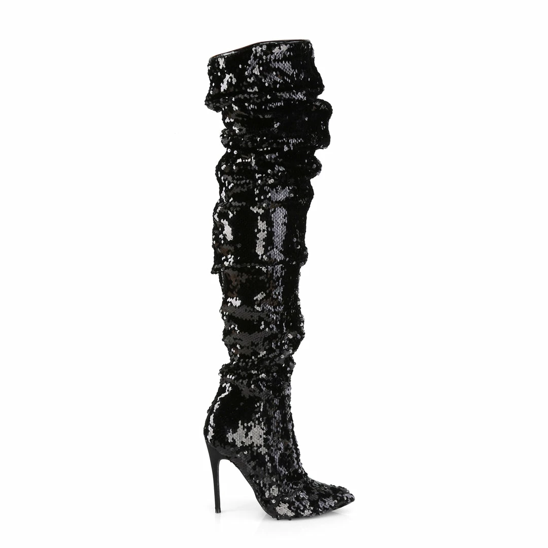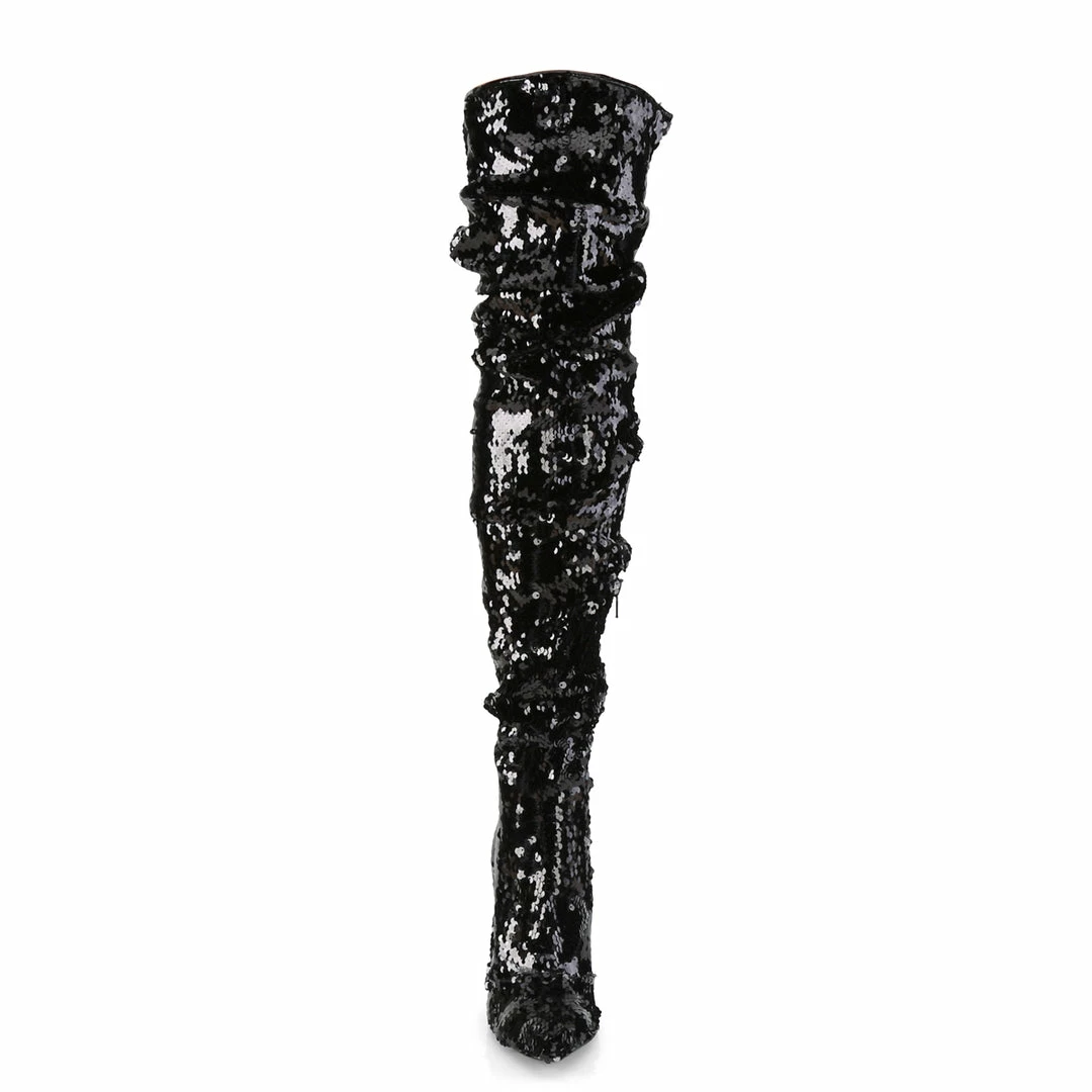 5″” (127mm) Heel Over-the-Knee Boot Featuring Ruched Slouchy Sequins Body, 1/3 Inside Zip Closure