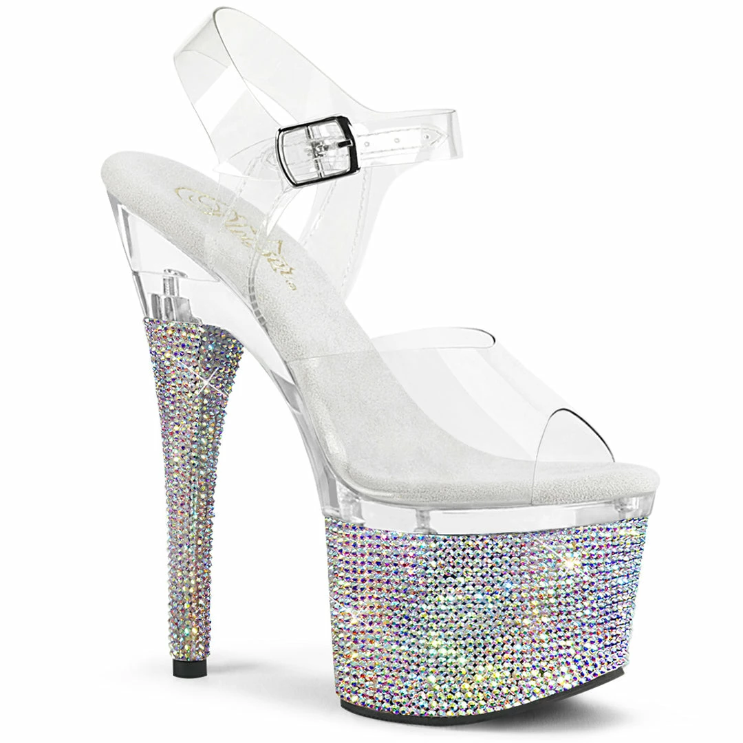 7″” (178mm) Heel, 3″” (76mm) Platform Ankle Strap Sandal Featuring AB Rhinestones Encrusted All-Over the Entire Platform Bottom